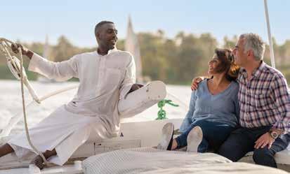 Sail along the Nile River aboard a traditional felucca, past the Botanical Gardens on Kitchener’s Island to see life on the river’s banks. Under the guidance of an expert Sailor, you’ll hear fascinating stories about the river’s rich history and cultural significance to the people of Egypt. Experience on Wonders of Egypt, p.146 and Splendours of Egypt, p.148.