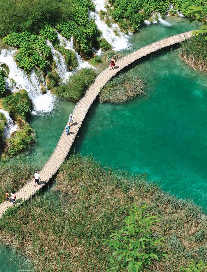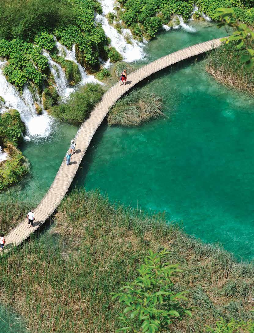 Plitvice Lakes National Park, Croatia, is one of Europe’s most breathtaking natural wonders. This spectacular UNESCO World Heritage Site is made up of 16 terraced lakes, both Upper and Lower, each with its own unique character, all connected by over 90 cascading waterfalls. Join a Local Expert to explore the park’s turquoise waters and lush green surroundings along a network of wooden walkways. Along the way, gain insight into the ongoing conservation efforts and scientific studies aimed at monitoring and protecting this fragile ecosystem for future generations. This experience advances UN Sustainable Development Goal 14: Life Below Water, UN Sustainable Development Goal 15: Life On Land. Experience on Eastern Capitals & the Dalmatian Riviera, (visit insightvacations.com), Eastern Discovery, (visit insightvacations.com) and Country Roads of Croatia, p.120.