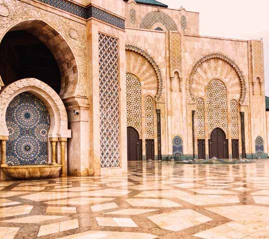 Old Hollywood ambience awaits you at Rick’s Café, famous for recreating the magic of the 1942 film Casablanca and the movie’s fictional “Rick’s Café Américain”. Step into this beautifully restored mansion where timeless elegance meets cinematic nostalgia. Dine under ambient lighting with classic decor, as your meal is accompanied by live music that winds back the clock to a golden era of romance and intrigue. Experience on Treasures of Morocco, p.66.