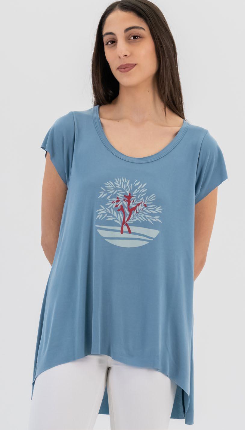 There have been olive trees here for thousands of years. They grow under all conditions and provide us with their precious fruits and oil. A pattern inspired by the Knossos Palace Olive Tree fresco. Archeological Museum of Heraklion, 1600-1450 BC. The Linear A ideogram for an olive tree hides in the trunk.