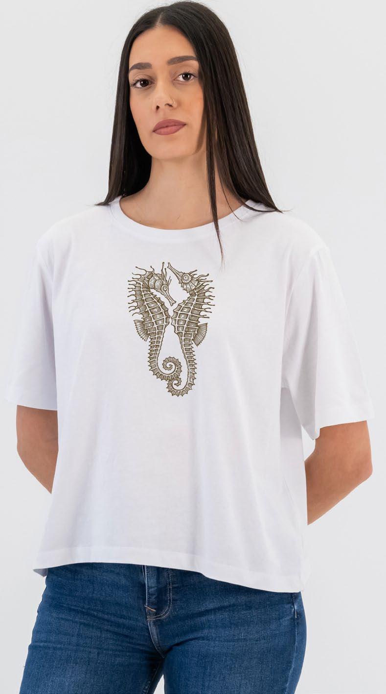 “From the immortal flesh arose white foam in the surging sea,and within it a maiden grew… The gods and men call her Aphrodite, because she was born from the foam”. Hesiod, Theogony. A pattern inspired by the respective statue created on Milos, ca,100 BCE. Louvre, Paris.