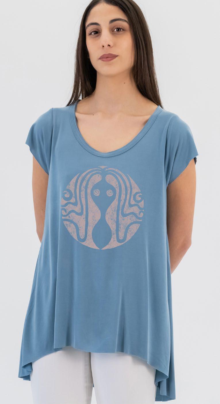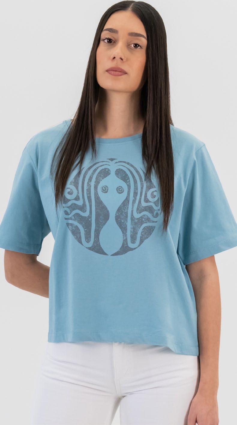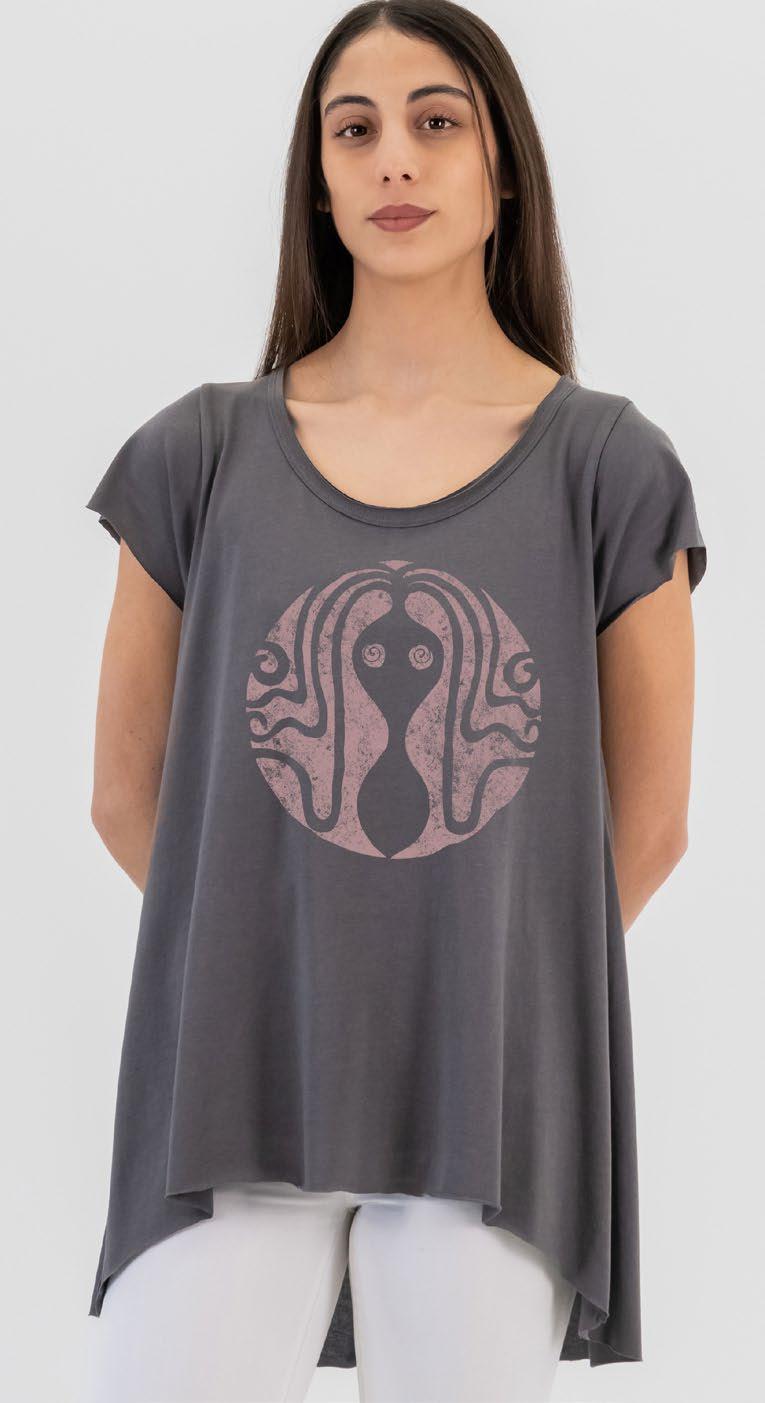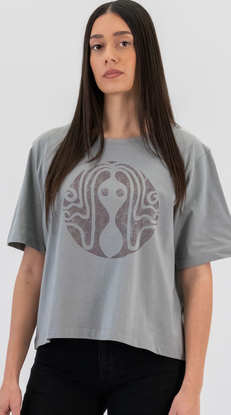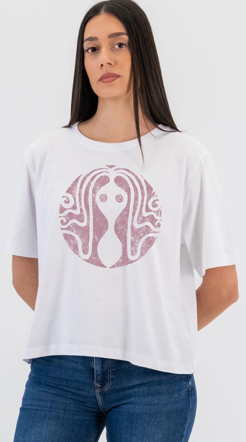 The mysterious Minoan Snake Goddess holds the secret of eternal rebirth. Pattern inspired by the graceful figurine excavated at Knossos, c. 1700–1450 BC.
