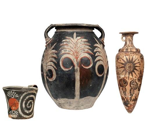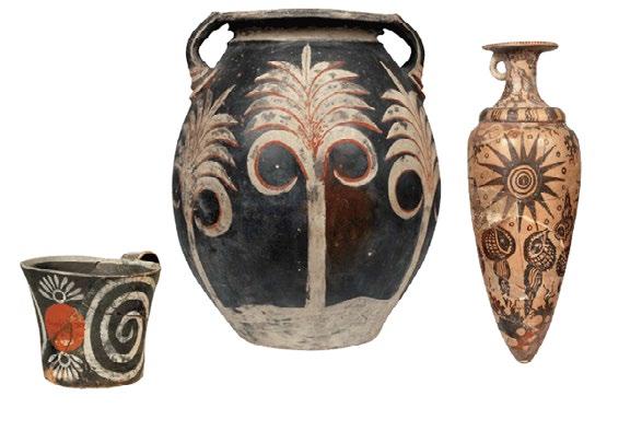 Nine beautiful patterns from Minoan pottery converge, highlighting the connection with nature that is essential to the Minoan world. The patterns come from three vessels that originate from three successive periods of Minoan history, ranging from 2000 to 1450 BC.
