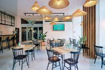 地上階のCHILLに入ると、落ち着いた雰 囲気が感じられます。VIAGE CHILLのコン セプトは都会の風景に完全にフィットしてい ます。交通量の多い大通りに面した VIAGE 地上階のロケーションも、木材や大理石など の天然素材を使用したZENの装飾も、よく 計算して選ばれました。