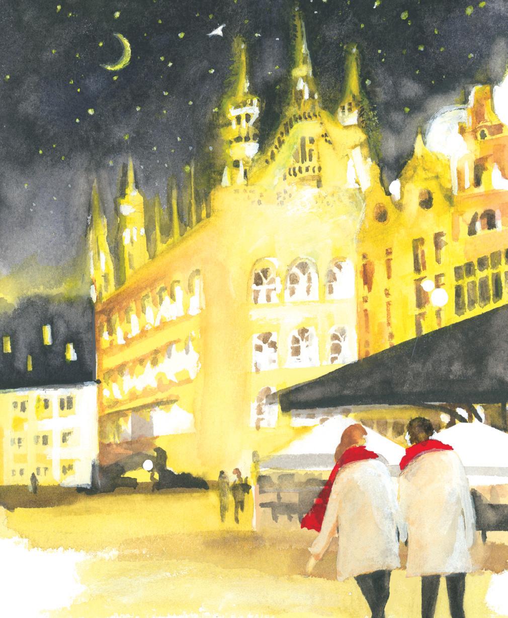 Aachener Weihnachtsmarkt 2. Monschau モンシャウ 山間に隠された秘境、モンシャウは 「アイフェルの真珠」の異名を持つ 古都。アドヴェント(待降節)期間 中は週末に限り、街全体がクリスマ ス・マーケット会場に。 「アイフェルの真珠」のクリスマス・マーケット 木組の家に囲まれた石畳の村を散策 すれば、歴史ある製粉所の名物マス タードに出会える。 (Senfmühle Monschau / Laufenstraße 118) ケルンでは、天使や小人、サンタ村 など異なるコンセプトのマーケット が市内6カ所で同時開催される。 街のシンボルは世界最大のゴシック 様式教会として名高いケルン大聖 堂。体力に自信のある方は登ってみ よう。500段以上のらせん階段を ぐるぐる回ってたどり着いた高みか らイリュミネーションで輝く夜空の ようなマーケットを見下ろせる。 ここでは定番の赤、白だけでなく、 ロゼのグリューワインも味わえる。 すっきりとした味わいの地ビール、 ケルシュ(Kölsch)も地元の名物 だ。また、ケルンはオーデコロン発 祥の地でもある。ミューレンス社の 「4711」をお土産にどうぞ。 大聖堂を誇る街は、 オーデコロン4711発祥の地 3. Köln ケルン 観光局:Kardinal-Höffner-Platz 1, 50667 Köln OPEN:9:00-19:00(日曜休業) i 場所:ケルン大聖堂周辺、Rudolfplatz、 Neumarkt、Schokoladenmuseum、 Heumarkt、Stadtgarten 会期:2022年11月17日〜12月23日 (Heumarktのみ2023年1月8日まで) OPEN:日〜水11:00-21:00 木金11:00-22:00 土10:00-22:00 URL:www.koelntourismus.de Weihnachtsmärkte in Köln 場所:旧市街、市庁舎、Kö-Bogen、Königsallee、 Schadowplatz、Schadowstraße 会期:2022年11月17日〜12月30日 OPEN:日〜木11:00-20:00、金土11:00-21:00 ※12月24日11:00-15:00、25日は休業、 26日14:00-20:00 URL:www.duesseldorf-tourismus.de Weihnachtsmarkt in Düsseldorf Schloss Merode ルネサンス様式のメローデ城 この地方で最も美しいルネサンス様 式の城の一つ。讃美歌が流れ、ロマ ンチックなアトラクションや特別な 屋台が立ち並び、家族連れにとって も夢の世界のよう。 住所:Kreuzherrenstraße 1, 52379 Langerwehe 会期:2022年11月23日〜12月21日 OPEN:水木14:00-20:00 金土14:00-22:00 日12:00-20:00 入場料:7〜13ユーロ URL:www.weihnachtsmarkt-merode.de © Stadt Aachen / Andreas Herrmann © Panoramapilot © www.koelnerweihnachtsmarkt.com アーヘンは8世紀に西ローマ帝国 のカール大帝が王宮を建設した都市 である。ドイツの世界遺産第1号 アーヘン大聖堂や歴史的な市庁舎な ど美しい建造物が立ち並ぶ。 この街は、「ヨーロッパで最も美し いクリスマス・マーケット・ランキ ング」の上位常連。入り口では高さ 約3mの巨大ジンジャーブレッド マンが出迎える。 名物ジンジャーブレッドがお出迎え ジンジャーブレッドはプリンテン (Printen)と呼ばれる当地の名物 菓子。大聖堂前のノビス(Nobis) というお店で買うのが定番のお土産 だが、香辛料が入っているため、人 によって好みは分かれるだろう。 チョコレート好きなら、リンツの工 場直営店へ。スイスの高級チョコが アウトレット価格で購入できる。 (Lindt / Süsterfeldstraße 130) 1. Aachen アーヘン © DZT / Stijn Van Hulle 会期:2022年11月25日〜12月18日 OPEN:金土11:00-21:00 日11:00-20:00 URL:www.monschau.de Monschauer Weihnachtsmarkt 国際商業都市デュッセルドルフで も6カ所でクリスマス・マーケッ トが開かれる。高級ブティックが連 なる優美な並木道ケーニヒスアー レー(Königsallee)を歩き、ナ ポレオンも訪れたという旧市街の 老舗レストランZum Schiffchen ライン川の「小パリ」でショッピングとグルメを堪能 に寄って地ビール、アルトビア (Altbier)で乾杯。お土産にはハイ ネマン(Heinemann)のシャンパ ン・トリュフをお忘れなく。欧州 随一の日本人街インマーマン通り (Immermannstraße)でお買い物 や日本食を堪能するのもおすすめ。 4. Düsseldor f デュッセルドルフ Décembre-December 2022 AOITORI.BE 5
