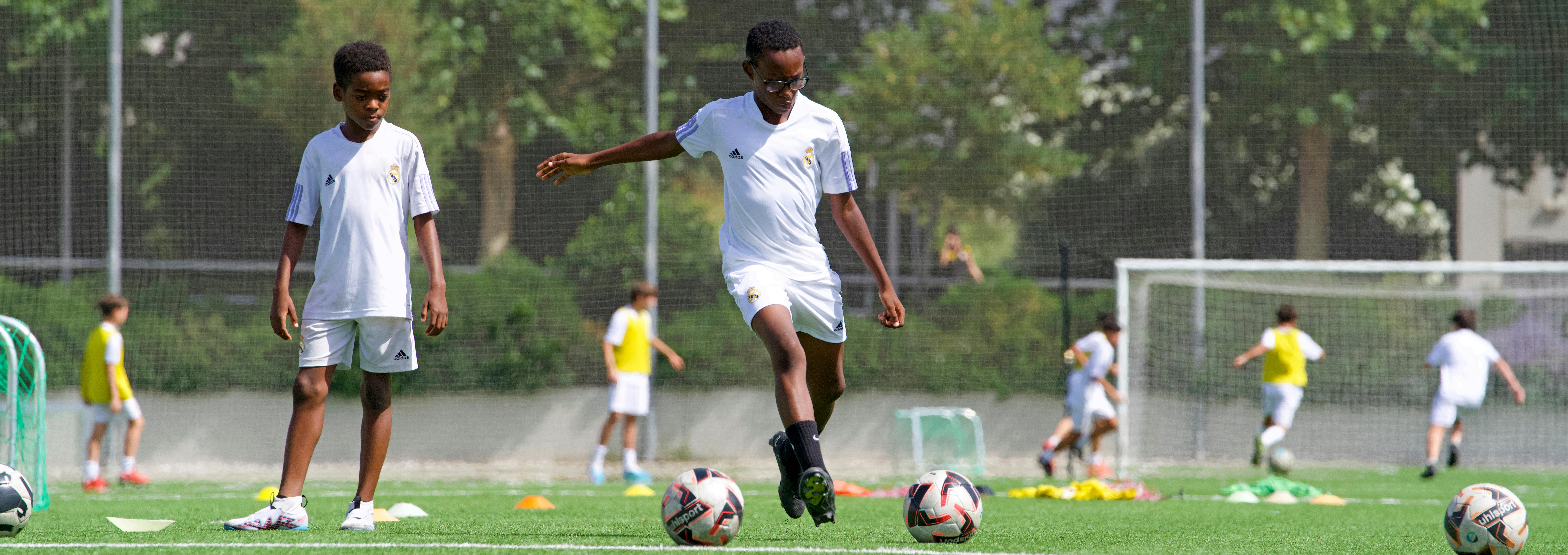 Our programme, in collaboration with the Real Madrid Foundation Campus Experience, is designed in age-based groups where children of diverse skill levels learn together. They have the opportunity to train with the best professionals, learn football techniques, as well as participate in a variety of educational activities related to the Real Madrid values of leadership, self-control, teamwork, effort and respect for others.