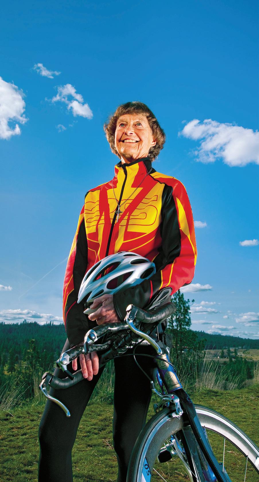 “She’s amazing,” says Jour nalist Karin Evans who co-au thored Sister Buder’s biography, The Grace to Race, which was published when she turned 80. “A year or so ago she broke her pelvis in a bike accident, and I thought ‘well, she’ll probably hang it up at this point. Then, six months later she sends out a note thanking everyone for their prayers and letting us know she is on her way to do an Ironman in Europe.”