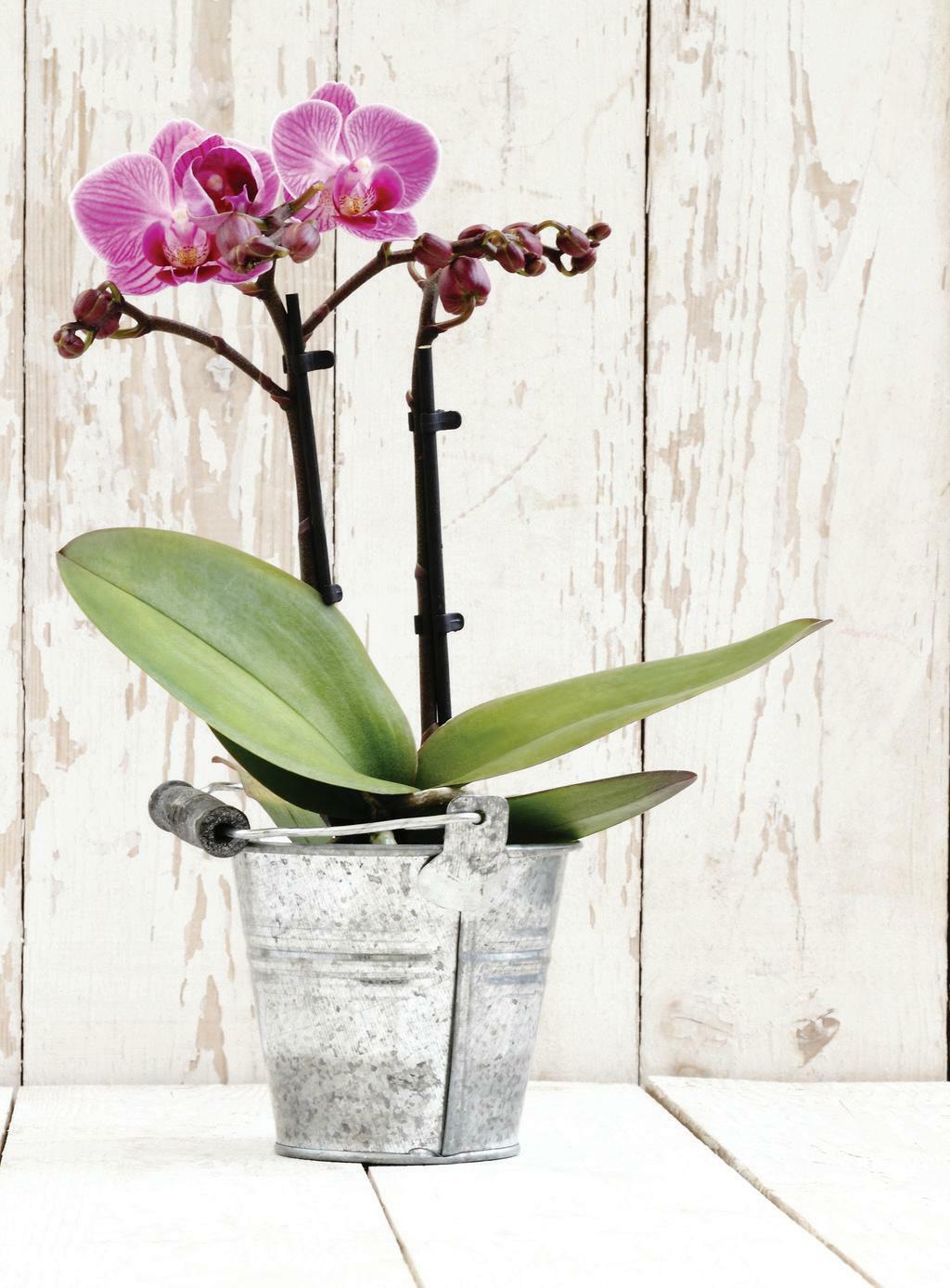 ✣ Watering is important but don’t water too much. Ideally an orchid should be watered just before it goes dry. Rather than relying on a weekly watering schedule, check your orchids’ need for water. Gauge the mois ture level of the potting medium with your finger. If the medium feels almost dry it is time to water. Ensure potting medium is moist but not sitting in excess water - that’s how orchids like it best.