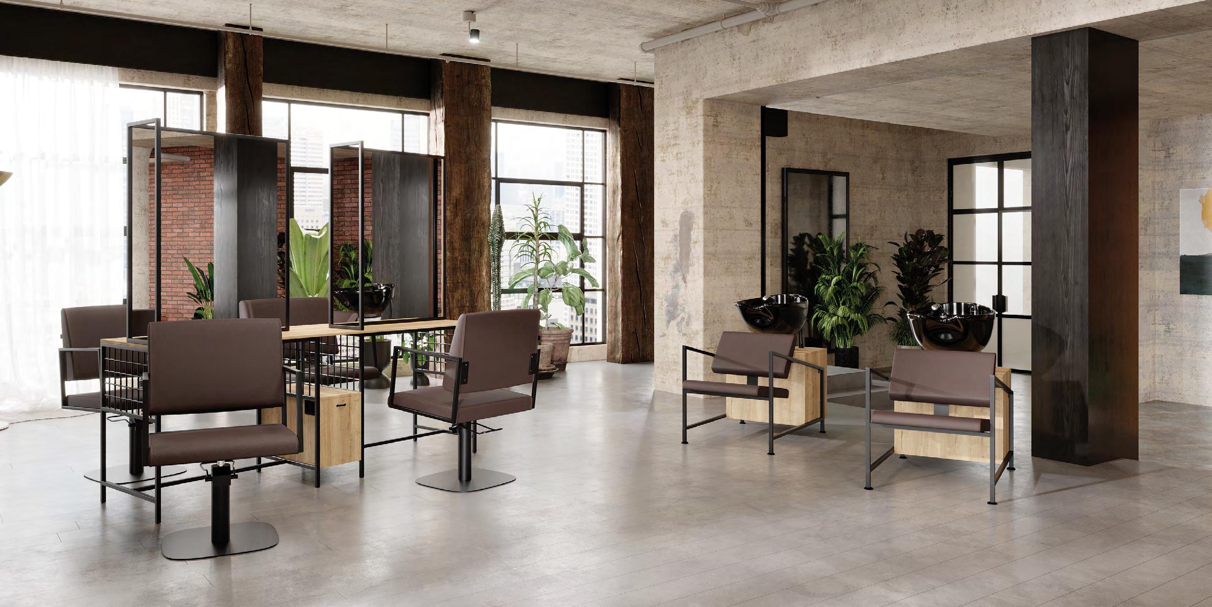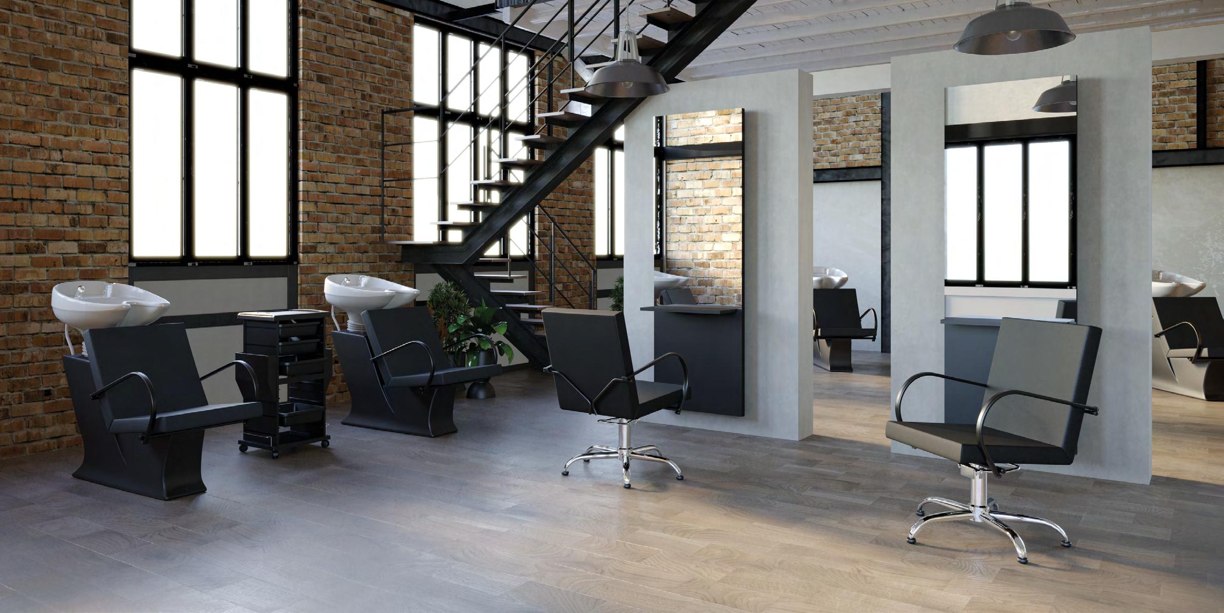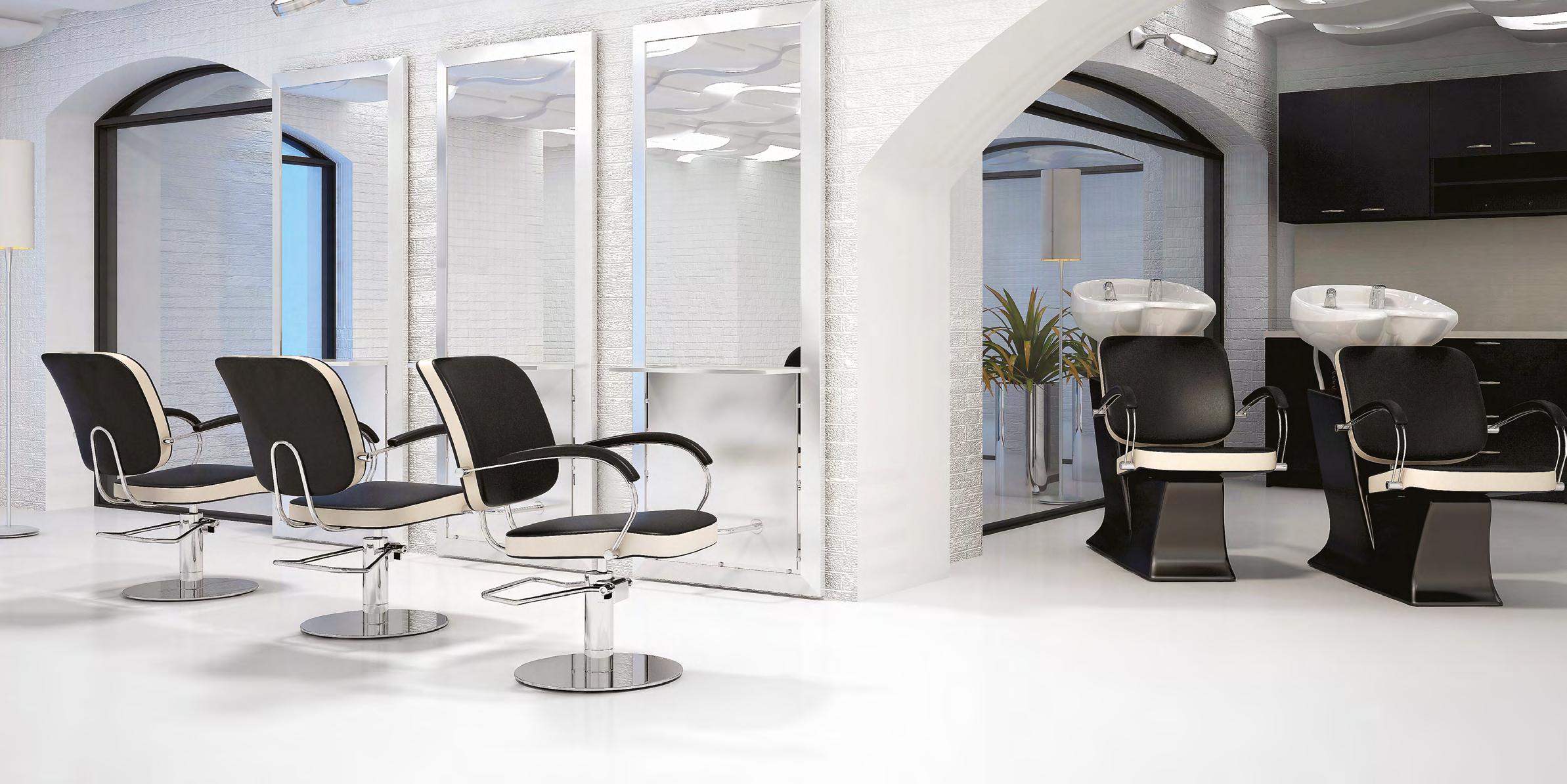 Hair styling chairs, styling units, backwashes, reception desks and waiting room furniture. A total of 205 products that you can mix and match.