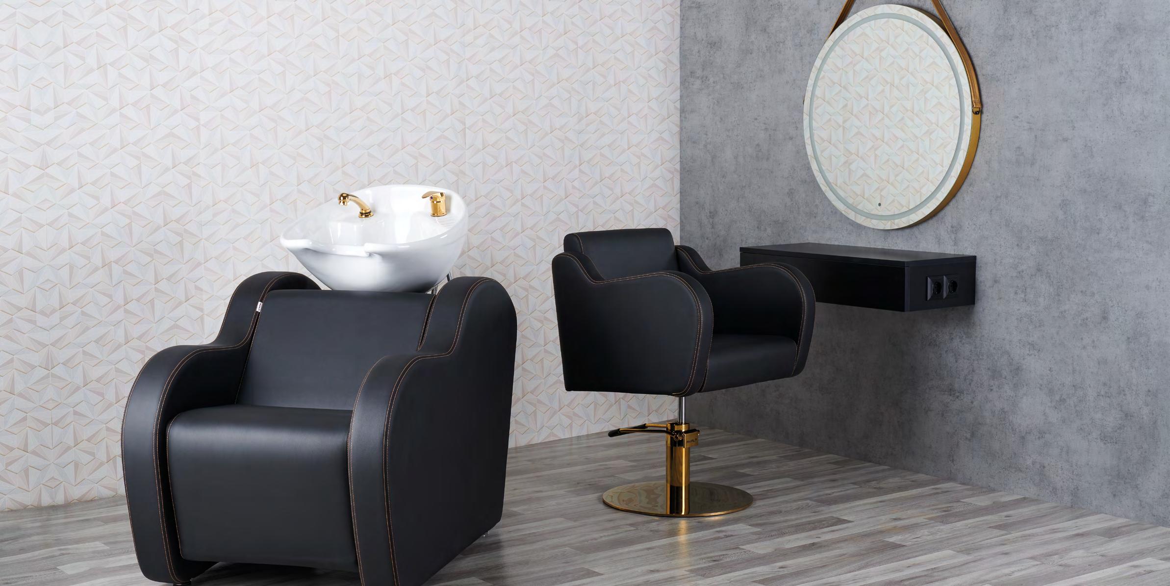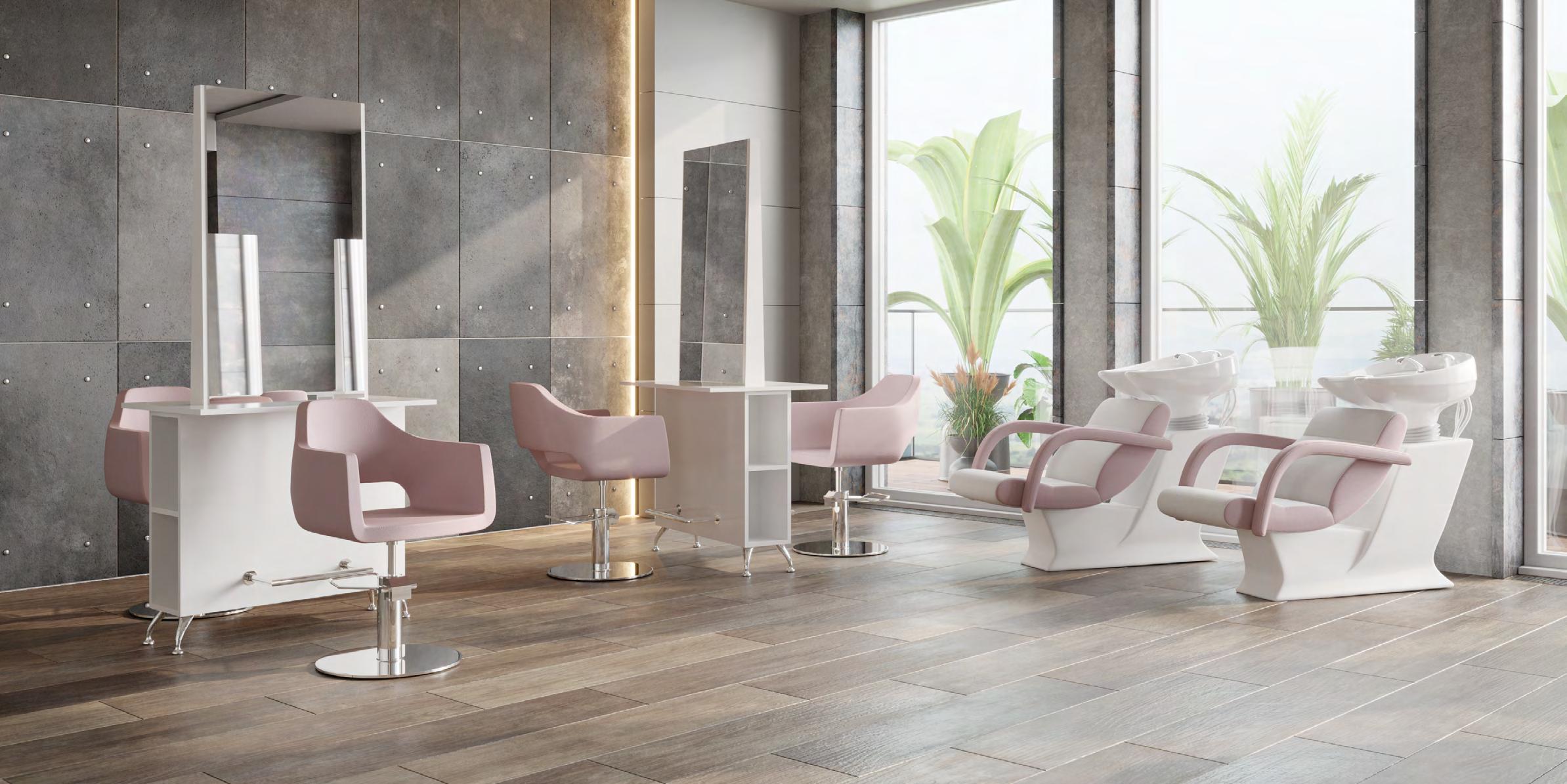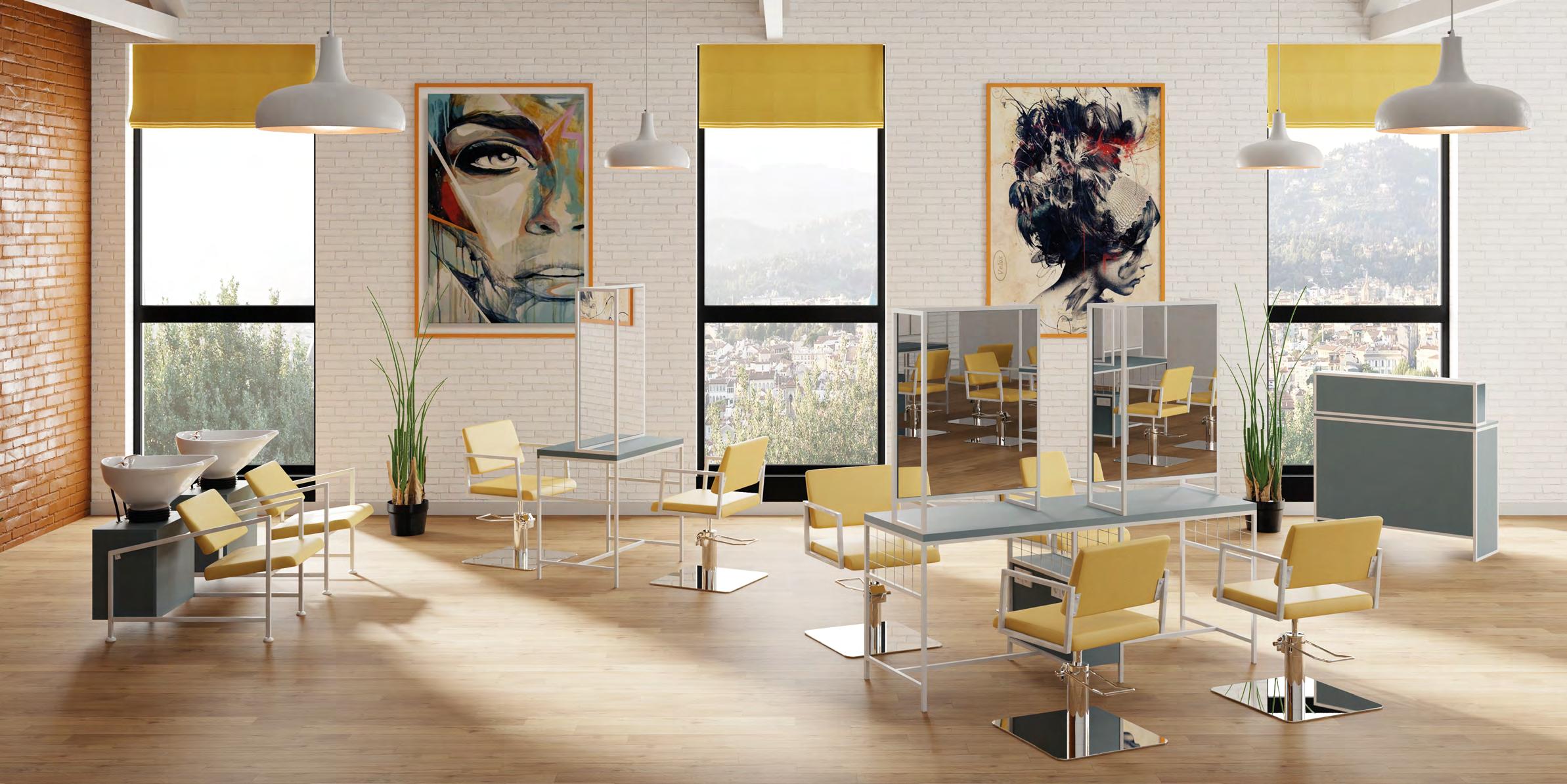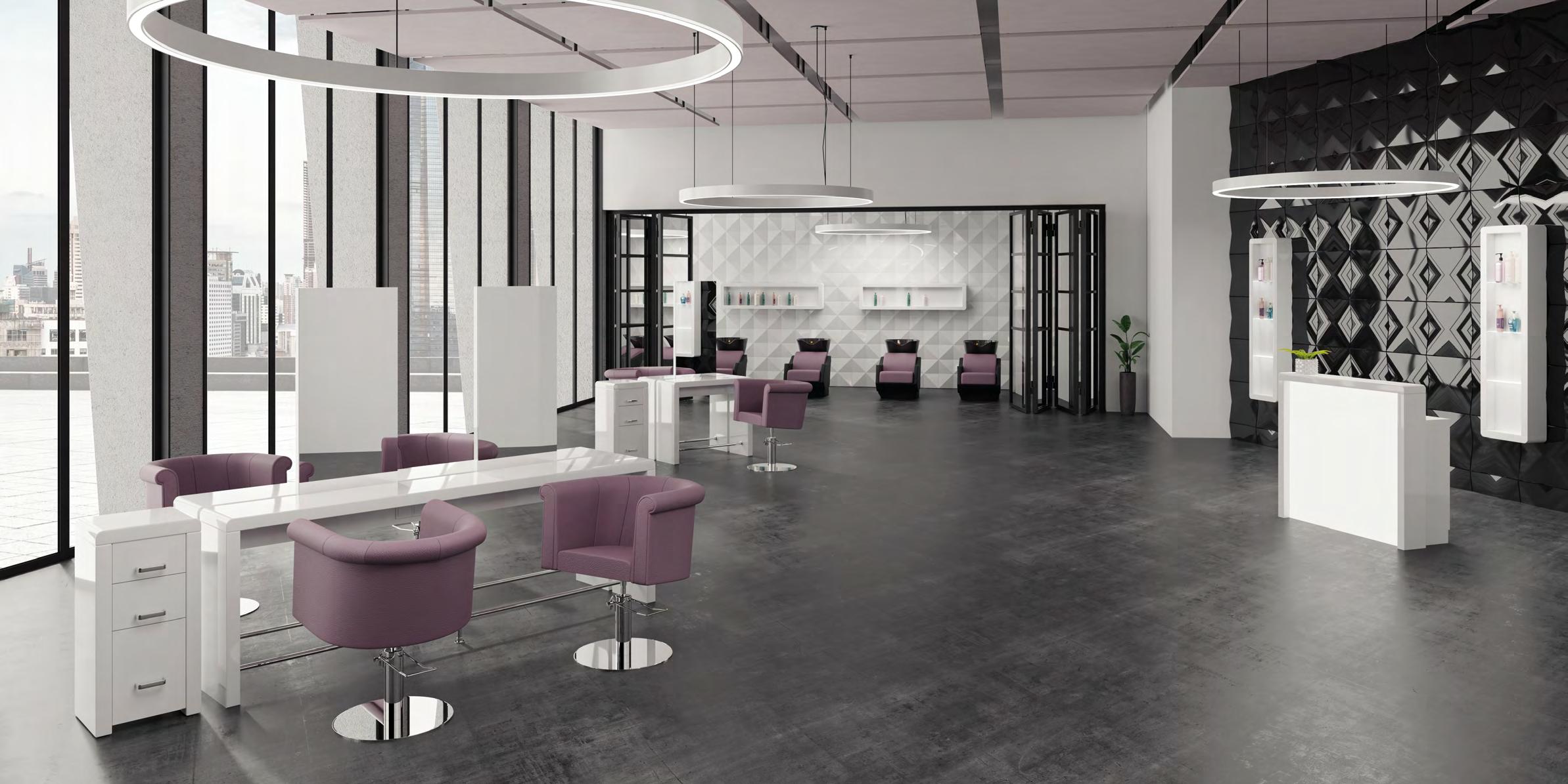 Hair styling chairs, styling units, backwashes, reception desks and waiting room furniture. A total of 205 products that you can mix and match.