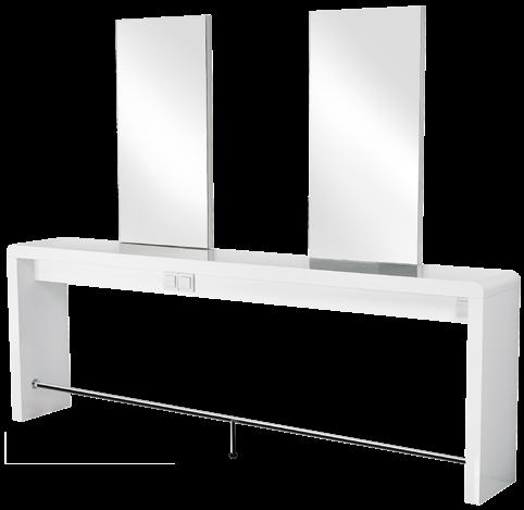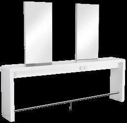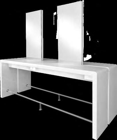 Dostępna jako konsoleta jedno lub wieloosobowa. Wykonana z płyty laminowanej. Marmurowy blat lub umywalka jako opcja.