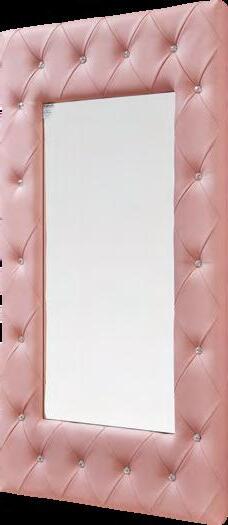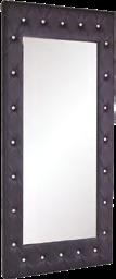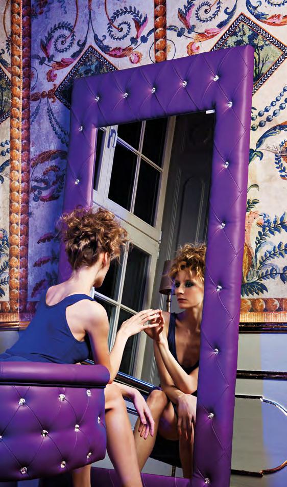 Round mirror with lacquered frame, on upholsteres belt. LED lighting in standard.