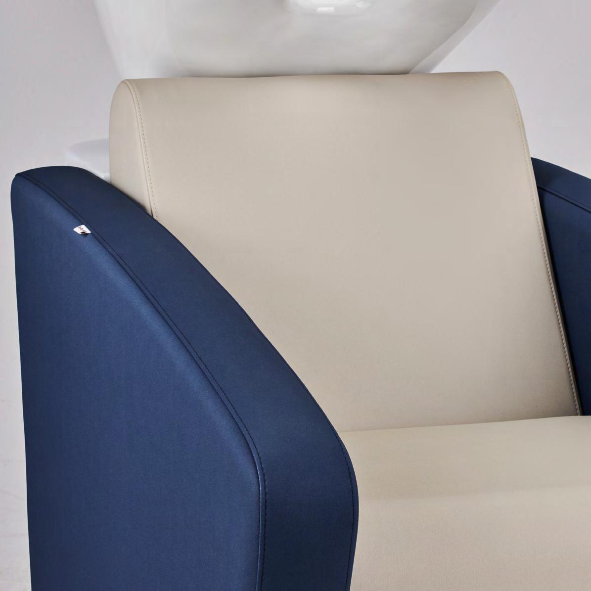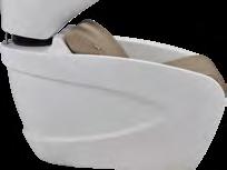 Innovative basin shape with comfortable head support with soft gel pad. Unfolds to a lying position. Upholstery with stitching or smooth. Innowacyjny kształ misy z podparciem pod głowę z miekką żelową nakładką. Rozkładana do pozycji leżącej. Tapicerka z przeszyciami lub gładka.