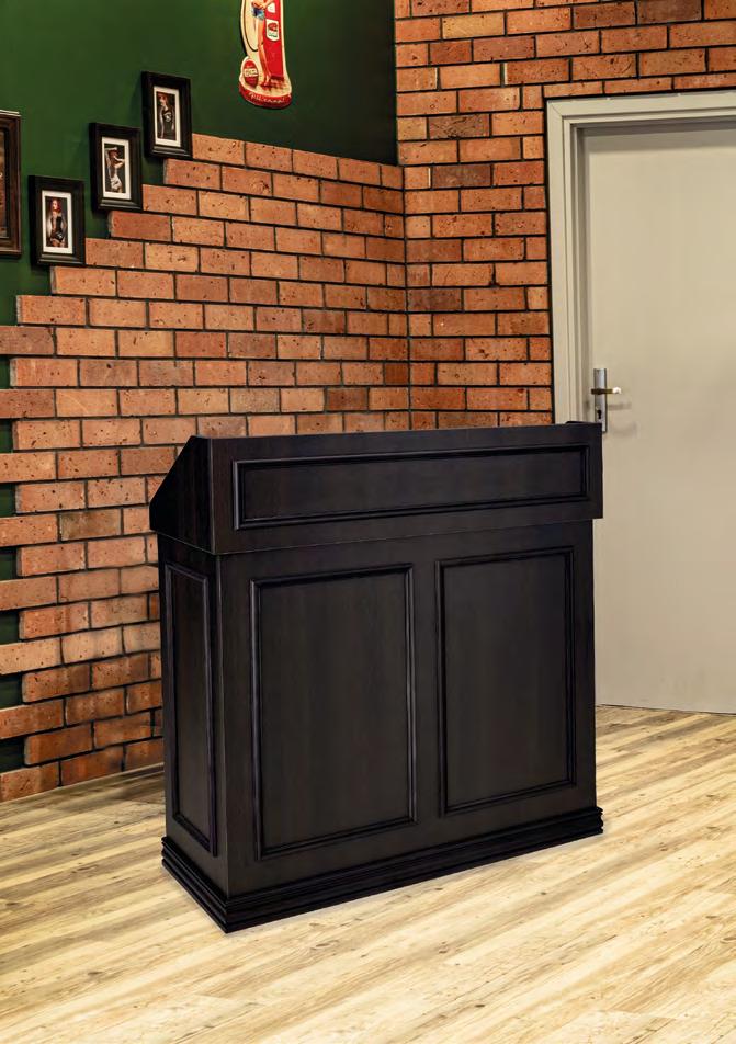 Wykonana z płyty laminowanej czarnej lub wenge. Marmurowy blat lub umywalka jako opcja.