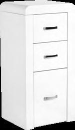 Fronty wykonane z MDFu lakierowanego na wysoki połysk. Szafki wykonane z płyty laminowanej. Marmurowy blat lub umywalka jako opcja.