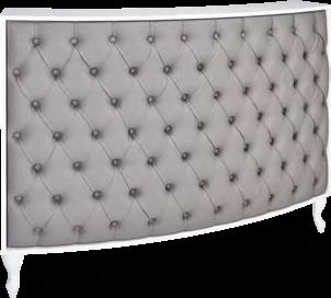 Boki myjni dostępne w wersji tapicerowanej lub z płytą laminowaną na zewnątrz. Biała metalowa rama.