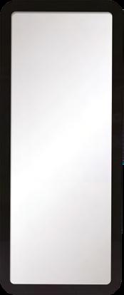 Lustro - podświetlenie LED w standardzie. Tylne podświetlenie LED jako opcja. Rama lustra i uchwyt na suszarkę dostępne czarne lub złote.