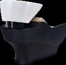 Innowacyjny kształ misy w podparciem pod głowę z miekką żelową nakładką.