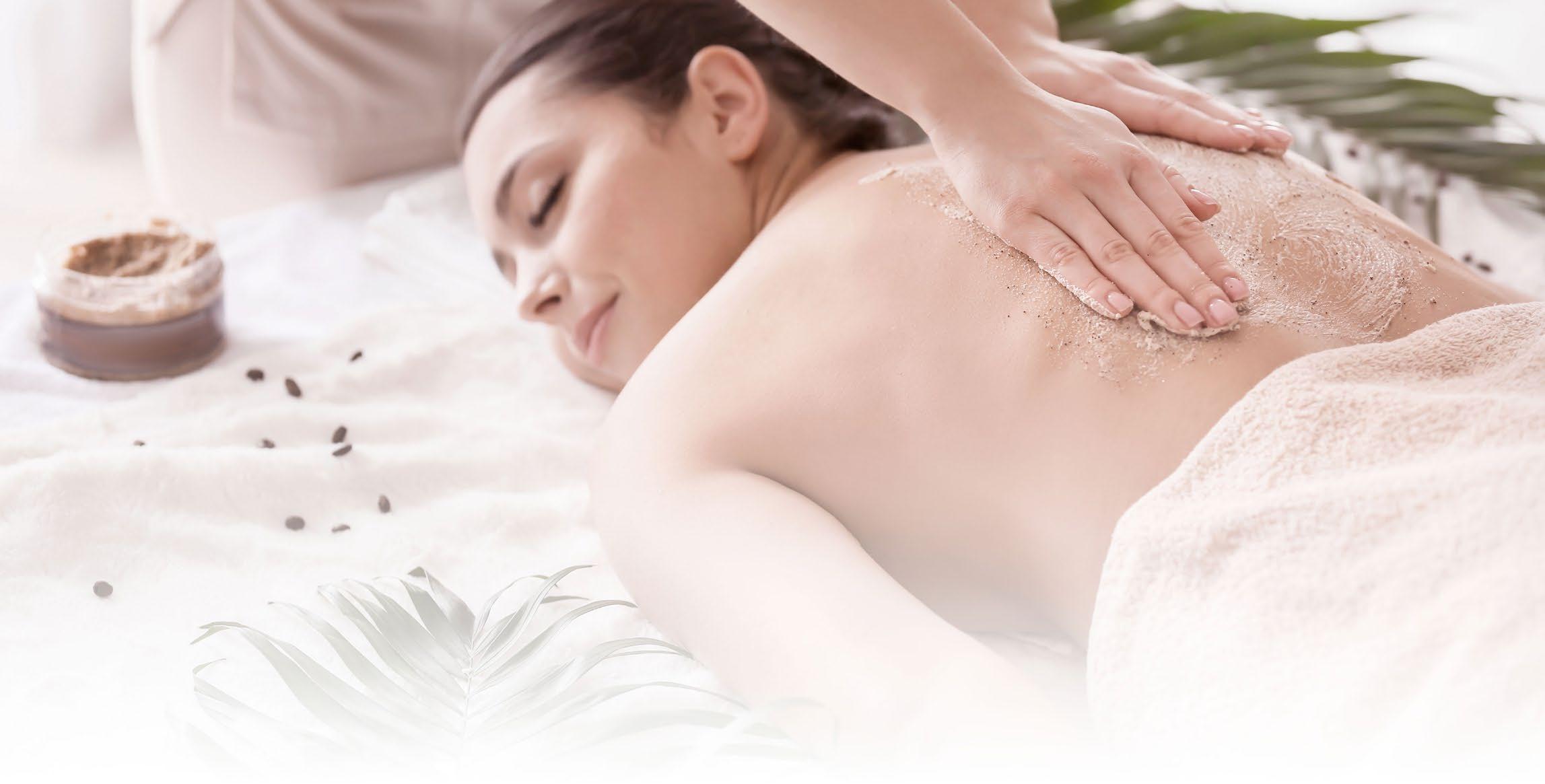 Scrubbing with silk or vegetable horsehair glove, whole sea salt, raw cane sugar, maize flour, chickpea flour, crushed (almost pulverized) walnut shells or apricot kernels, bicarbonate coffee powder, crushed citrus peel.