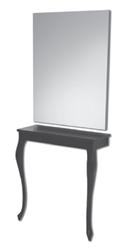 available in all laminated board colours, mirror frame, legs, footrest and hair dryer holder in black or gold, mirror with LED backlight as standard, built-in electrical socket