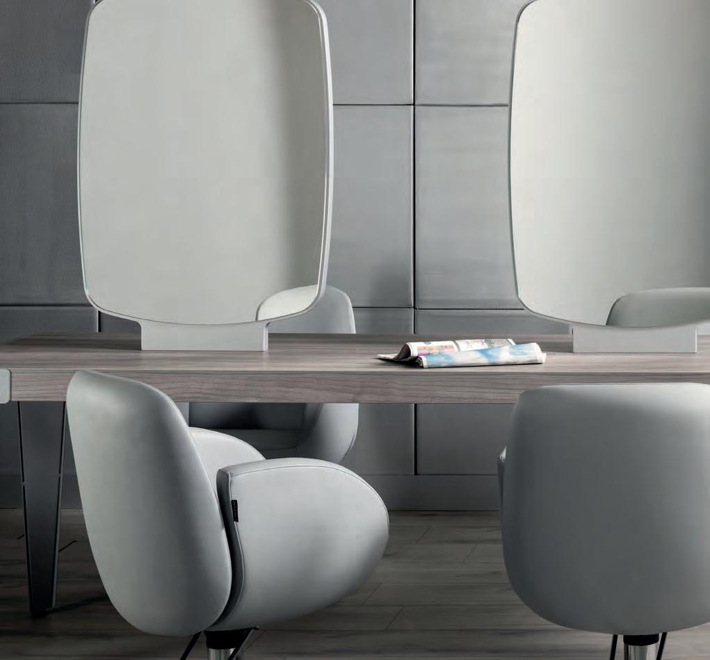 Methacrylate window backlit by LEDS where the salon logo can be applied and optional capitone style quilted upholstery.