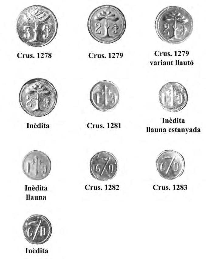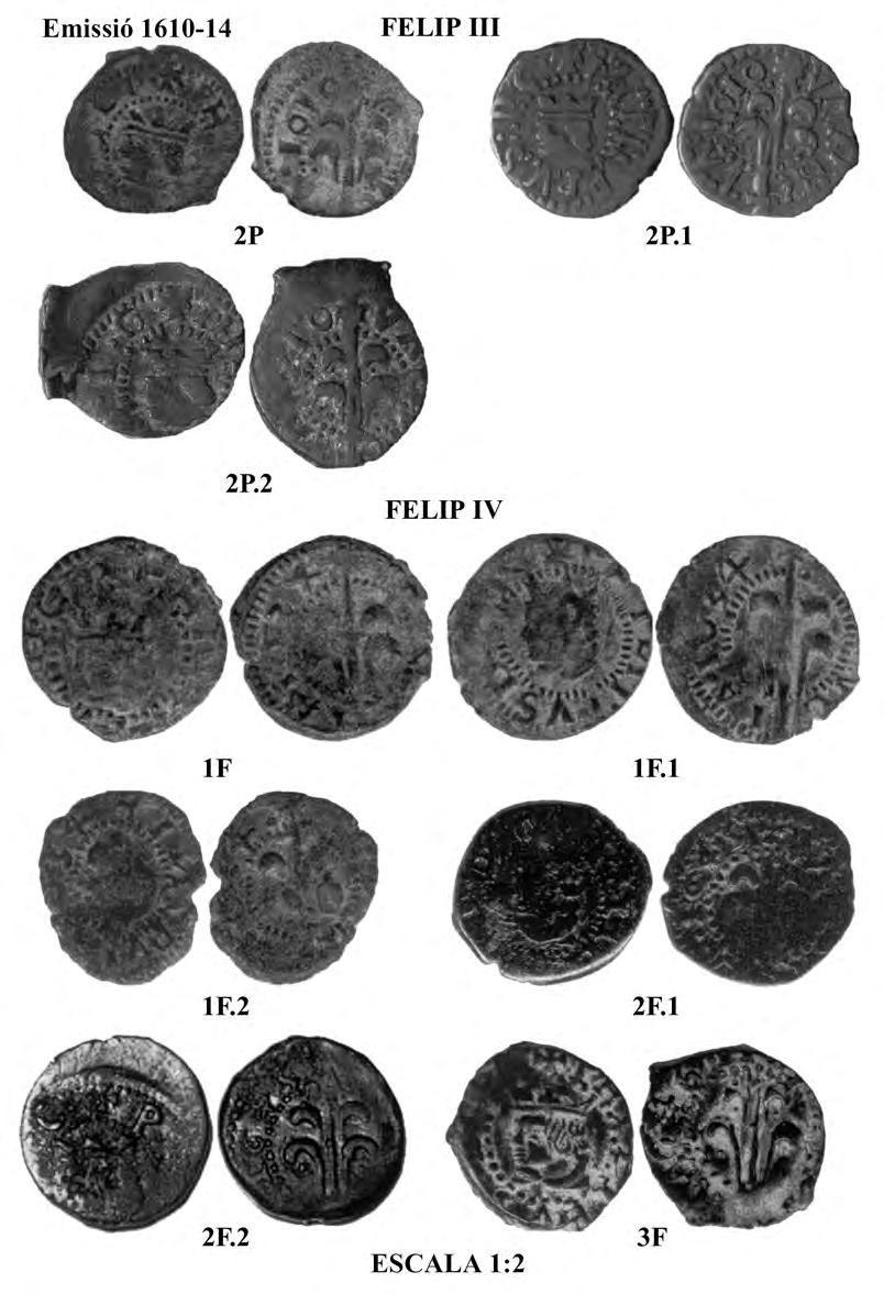 1,19; 1,20. En difereix, però, el tipus de lletra, que en aquest exemplar és força estrafeta i de mal·llegir, especialment a l’anvers, tal com ja assenyala l’autor. Al nostre parer, no s’hauria d’haver llegit PETRVS EPIS, sinó PETRVS PIS, per bé que això no canviaria pas l’atribució ni la manera de completar la llegenda, que hauria d’ésser igualment PETRVS (E)PIS (COPVS).