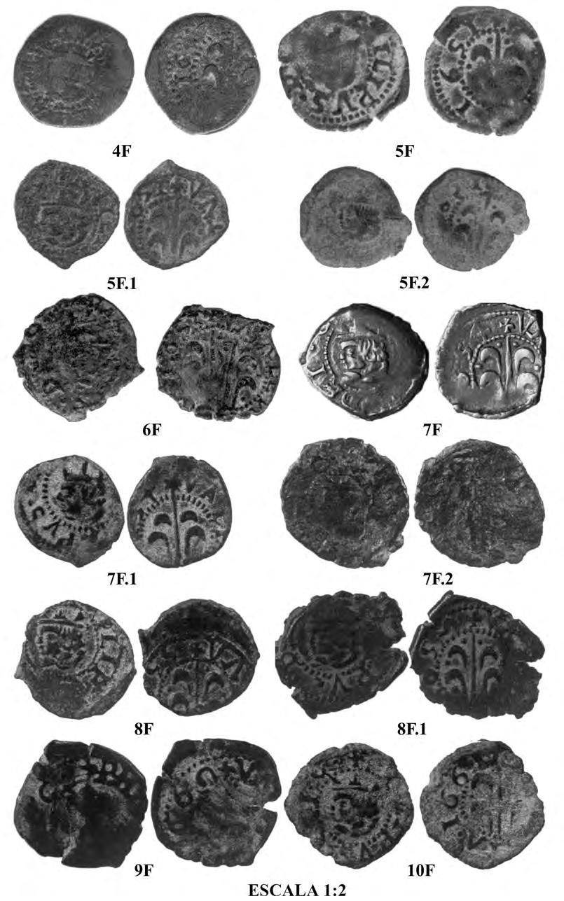 Nosaltres vàrem establir una cronologia aproximada per als coures visigots, amb un inici en temps de Leovigild (568-586), que es basava en el parentiu dels coures d’Emèrita amb el bust del primer tipus de trients d’aquest sobirà. El punt final per a l’aparició dels darrers tipus el situàvem amb Vamba (568-586), amb la innovació del bust de perfil amb una creu a la mà. Partíem sempre del fet que era normal que el coure imités els models de l’or, més que no pas que fos a l’inrevés. Al marge d’això, teníem present l’adopció de tipologies bizantines, una constant en aquest període. Independentment de l’adopció d’uns o altres models, una qüestió no pas transcendental, els coures seguirien, naturalment, en circulació durant tot el període visigot. Per tant, el nostre espai és 568-711/714, que encaixa perfectament amb la cronologia del grup paral·lel bizantí que és, com hem dit, 534-741. El decalatge inicial queda explicat amb la nostra hipòtesi que l’aparició del coure visigot fos precisament estimulat per la presència a la Península dels coures d’origen bizantí, introduïts amb motiu de la conquesta de Cartagena i un ampli entorn en temps de Justinià. Per tant, que el punt inicial visigot sigui quelcom més tardà. Pel que fa a l’arribada d’aquest numerari a Menorca, és certament més lògic pensar que aquest transport es féu durant el domini bizantí d’ambdós territoris, Cartagena i Menorca, és a dir, des de Justinià fins a l’entorn del 624. No hi ha raons per negar el possible transport posterior, sinó només cal explicar-lo. De tota manera, si aquest pas fos impossible, l’únic que caldria fer és variar la cronologia de l’aparició dels tipus visigots que nosaltres hem considerat més tardans, però això no invalida en res la seva atribució al període visigot. En concret, caldria sobretot avançar uns cinquanta anys l’aparició dels tipus tardans d’Hispali amb S-Pals costats de la creu que nosaltres havíem suposat del temps de Khindasvint/Recesvint (642-672), perquè la presència d’un unic exemplar d’un coure que nosaltres pensem que s’inicià en temps de Vamba tampoc creiem que es pugui considerar significatiu. Amb tot, és possible que ni tan sols això sigui necessari. Pensem que només que es pogués establir un cert contacte entre la monarquia visigoda i el·litoral bizantí nord-africà, en certa manera una constant històrica, n’hi hauria prou per justificar el pas ulterior d’algunes peces visigodes a Menorca.