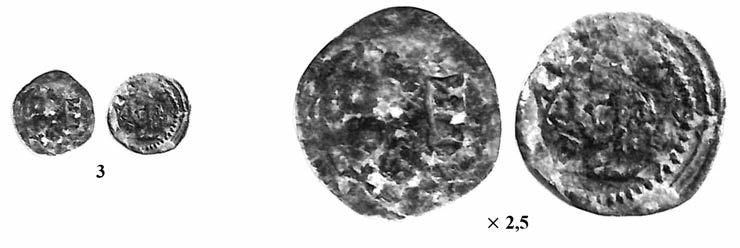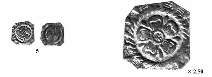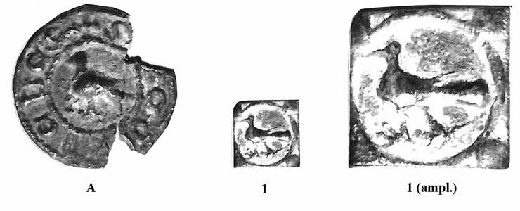 A més de l’interès que desperta la novetat del tema, a nosaltres ens han cridat molt l’atenció uns òbols que porten al revers el nom de la seca en monograma. En estudiar els coures visigots vàrem observar que algunes peces merovíngies portaven els noms de la seca indicats per dues lletres disposades a cada costat del pal d’una creu; M-A per MA(SALIA), per exemple. Era la mateixa solució que per als nostres S-P als costats d’una creu que interpretàvem SP(ALI). Ara veiem, però, que en els petits òbols es va optar per una altra solució: els monogrames. Així, la mateixa seca de Massàlia apareix amb un monograma que conté una M i una S a un dels extrems superiors i que per a Melle s’adopta la mateixa solució, amb una M de la qual parteixen els trets d’una E cap a l’esquerra i fent els pals verticals de la M el paper de dues L per a completar la lectura. Unes solucions, doncs, molt apropades a les que veiem als petits coures visigots coetanis que nosaltres vàrem atribuir als tallers d’Emerita i Toleto. Els monogrames solien ésser emprats en aquest temps, sobretot per als noms dels reis. Ara veiem un cas en què designa la seca, donant, doncs, més versemblança a les nostres hipòtesis relatives als coures visigots peninsulars.
