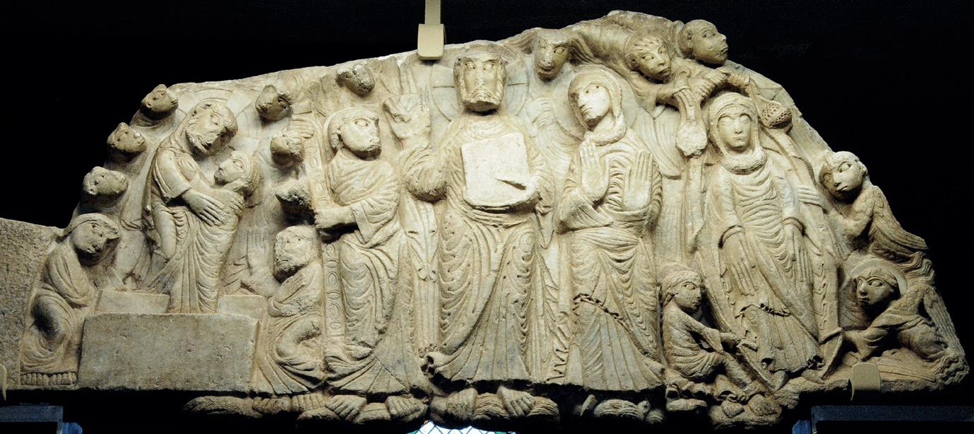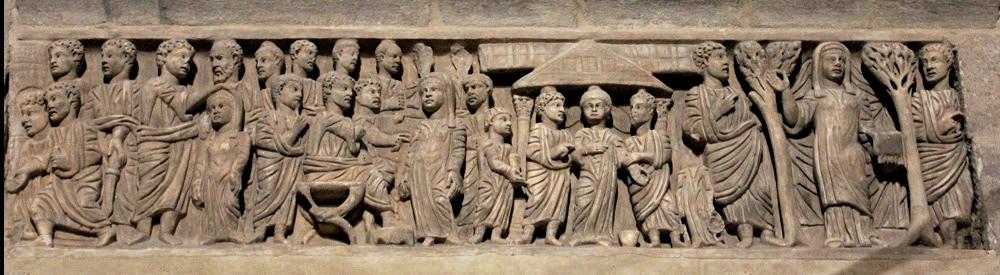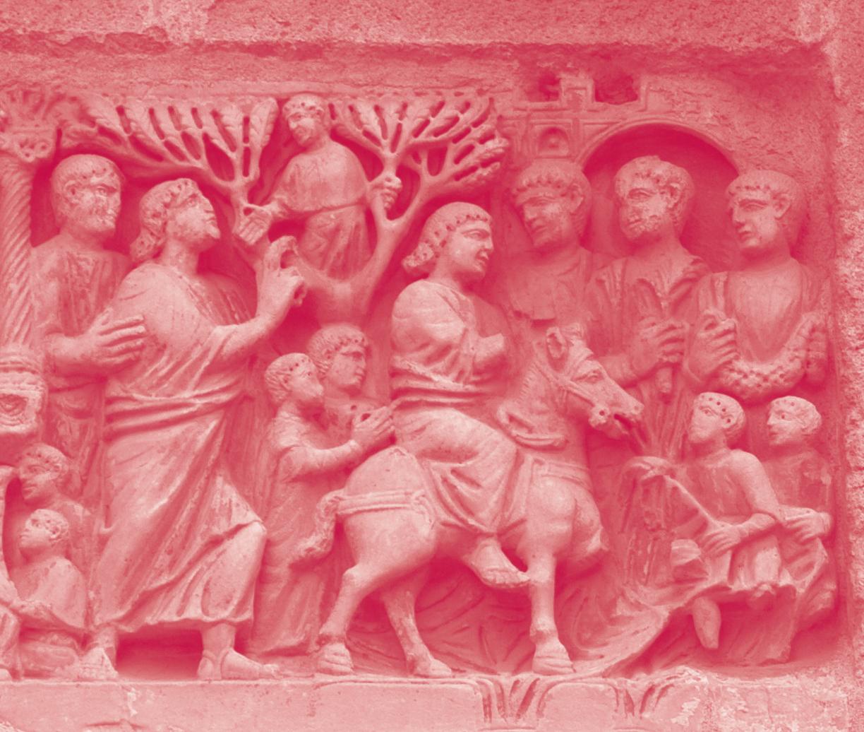 Fragment of the Bethesda sarcophagus (cathedral of Tarragona, late fourth century AD). Made of white marble in the era of emperor Theodosius, it is an example of palaeo-Christian art that depicts Jesus’ triumphal entrance into Jerusalem five days before he died on the cross.
