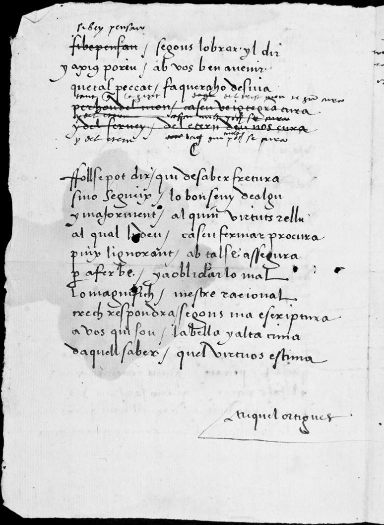 “L’engan que huy cascú pren en son viure”: new data on the poetry of MiqueL ortigues