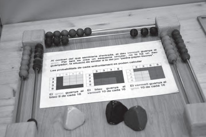 Esconeixen diferentsexemplesd’aquestfetambdauscúbics(2).Enaquestmòdul, però, hem anat abuscar unasituació al méssimplepossible, il’hem trobatambelstresdaus tetraèdrics 4-4-4-1,5-5-2-2 i 3-3-3-6.