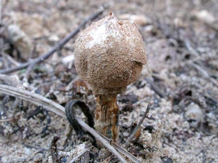 Schwein.) Tul. & C. Tul., Nectria cinnabarina (Tode) Fr., Cheilymenia theleboloides (Alb. & Schwein.) Boud., Geopyxis majalis (Fr.) Sacc., Helvella leucomelaena (Pers.) Nannf., Hydnocystis arenaria (Tul. & C. Tul., Melastiza chateri (W.G. Sm.) Boud., Morchella elata Fr., Peziza lobulata (Velen.) Svrček, P vesiculosa Bull., Tarzetta catinus (Holmsk.) Korf. & J.K. Rogers, Battarrea phalloides (Dikcs.) Pers. f. phalloides, Bovista aestivalis (Bonord.) Demoulin, Cyathus stercoreus (Schwein.) De Toni, Tulostoma giovanellae Bres., T. macrocephalum Long, Pisolithus arhizus (Scop.) Rauschert, Scleroderma verrucosum Bull.: Pers., Geastrum fimbriatum Fr., G rufescens Pers., Ileodyction gracile Berk., Hydnangium aurantiacum R. Heim & Malençon.