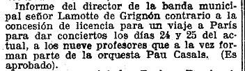 alavedra, Joan. Pau Casals. Barcelona: Aedos, 1962. 417 p. almacellas, Josep Maria. «El procés de creació de l’Orquestra Municipal de Barcelona». Revista Catalana de Musicologia, vol. iii (2005), p. 93112. La Banda Municipal 1886-1944: Del carrer a la sala de concerts. Barcelona: Ajuntament de Barcelona, 2006. 491 p. aviñoa, Xosé. «L’activitat musical». A: aviñoa, Xosé (ed.). Història de la música catalana, valenciana i balear. Vol. 4. Barcelona: Edicions 62, 1999, p. 58102. BaldocK, Robert. Pau Casals. Barcelona: Sàpiens, 2005. 398 p. Boult, Adrian C. «Casals as conductor». Music and Letters, vol. 4, núm. 2 (abril 1923), p. 149152. casals, Enric. Pau Casals: Dades biogràfiques inèdites, cartes íntimes i records viscuts Barcelona: Pòrtic, 1979. 347 p.