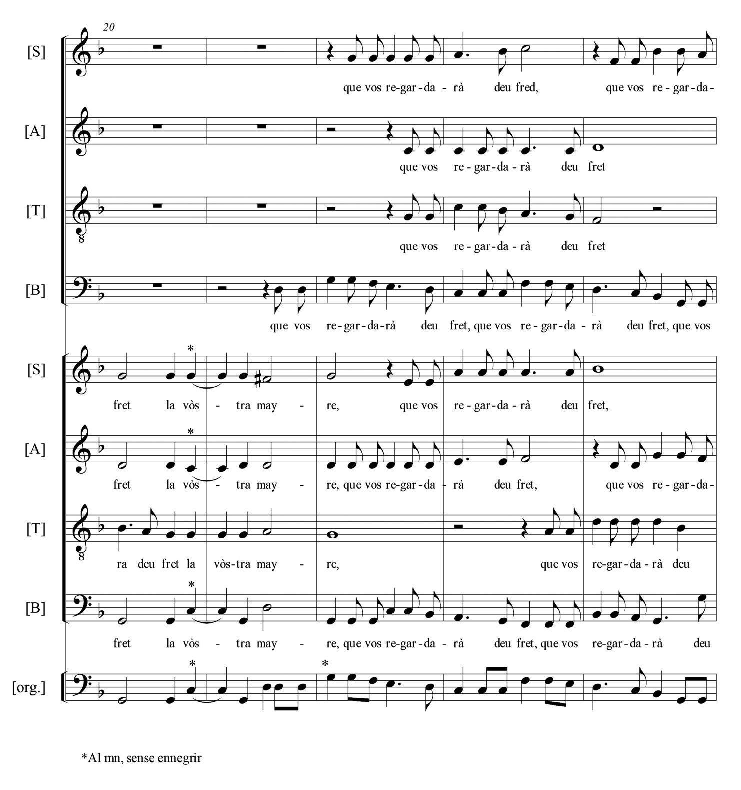 Senyor Déu plen de gran dolsor (8) dix lo seruent a son Senyor (8) Lo mal que·m fan perdona’ls lurs (4 + 4) no·n agen pena ni dolor. (5 + 3)