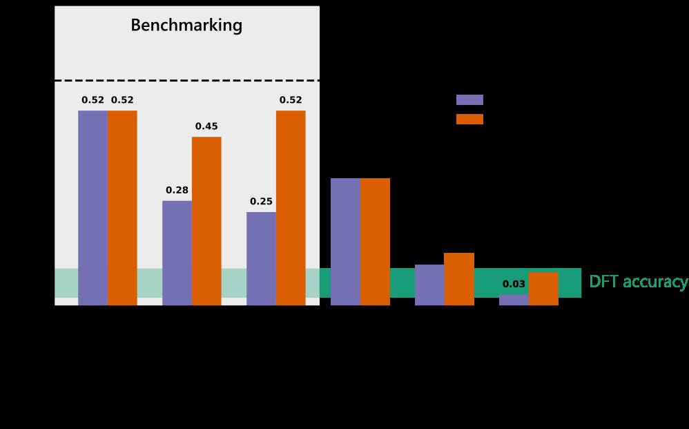 A: Thereisvirtuallynolimittowhichpropertiescanbepredictedwiththisframework,solongtheground-truthtechnique(e.g.,density functionaltheory)thatisusedtogeneratethetrainingdatacanpredictthepropertyofinterestwithareasonableaccuracy.Forexample,DFT cannotaccuratelypredictexcitedstatepropertiesandhencethedatageneratedwouldnotbemeaningfulforcreatingaMLmodel.