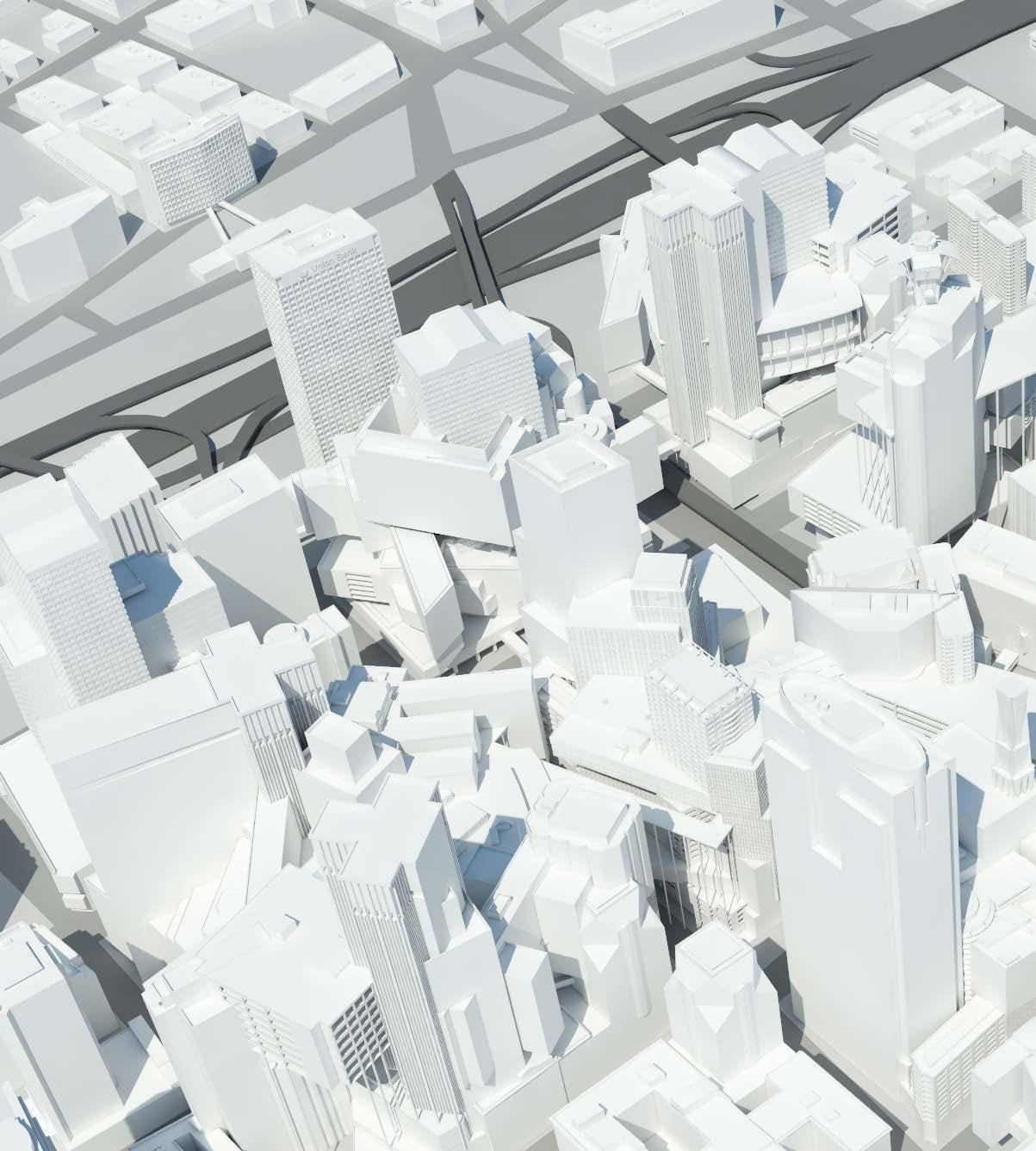 This project is an approach to densify the city of Los Angeles to its utmost capacity in an organized manner of the block-grid of downtown LA. Mimicking the language of the composition of the Bonaventure, each block of the city has a diferent interpretation of the “city within a city,” by integrating various buildings of diferent program and function that exist in the city. As the individual buildings mingle and intersect with each other, fgural voids then hold their presence as it acts as the privatized public spaces of a city. Some mini cities at each block may be tight as they situate elbow-to-elbow. These moments create pathways from city to city, as well as bridges and extensions of certain parts of the cities connect each block to each other.