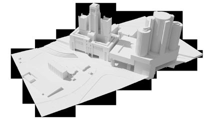 Widely known as the “City Within A City,” the Westin Bonaventure in Downtown, LA is John C. Portman’s most famous portrayal of a city in a single building. As it refects the regular city, the building holds spaces of dwelling, ofces, shops, recreation, parking, infrastructure and other places for leisure. What would be perceived as an outdoor public space is now spatially enclosed as a privatized public space. Infrastructural roads and sidewalks are raised and wrapped around the interior as ramps and bridges. Programmatic volumes morph into diferent forms as it adjusts to create a centre atrium in which the people will be able to openly gather and habituate.