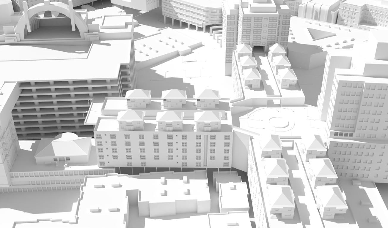 The last Phase of the design research project is to visualize the new model of density in a photorealistic image, an image that places the project back into the context of the city.