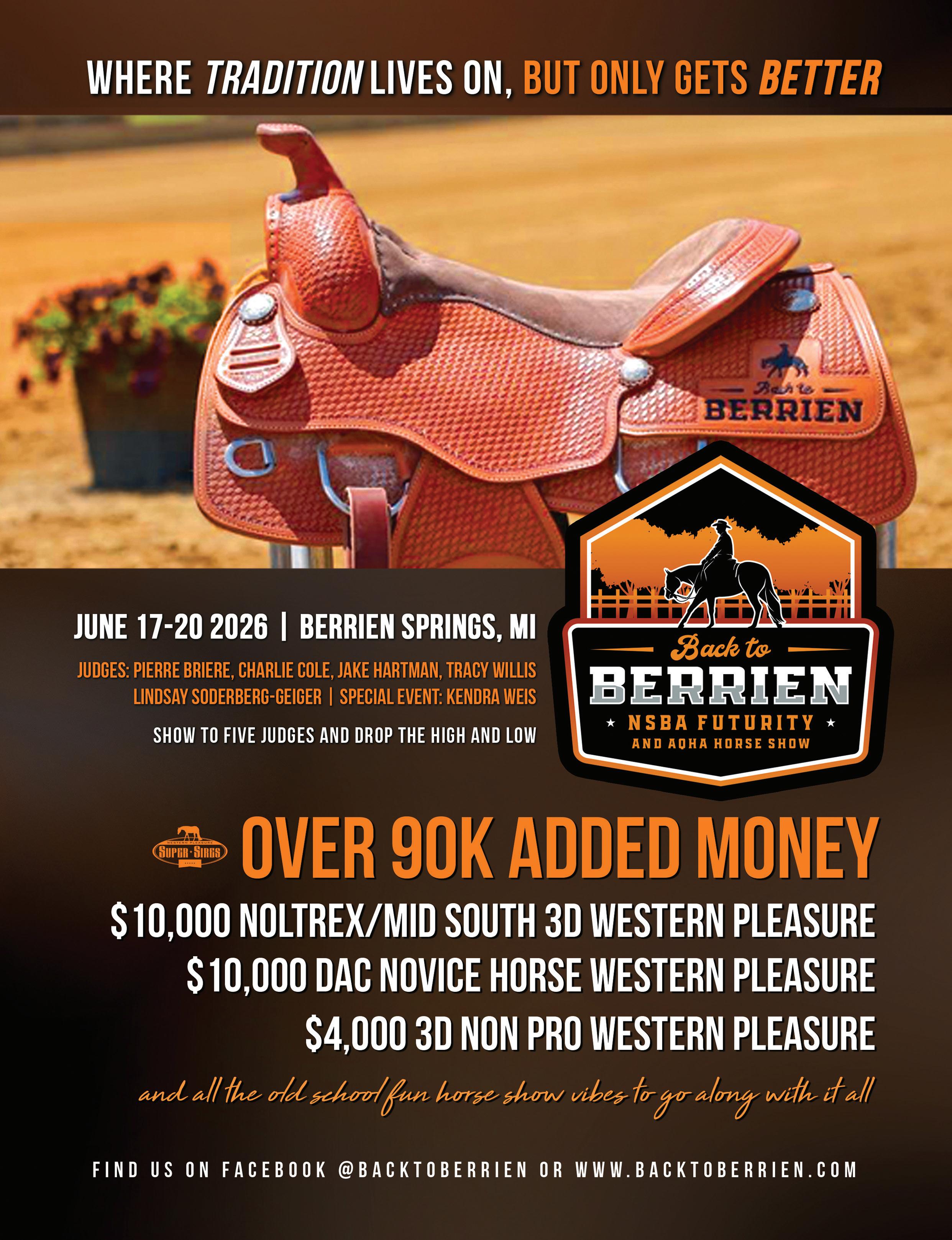 $30,000 added - including an Open 3-Year-Old Ranch Riding Futurity: $15,000 added and a Non-Pro 3-Year-Old Ranch Riding Futurity: $15,000 added