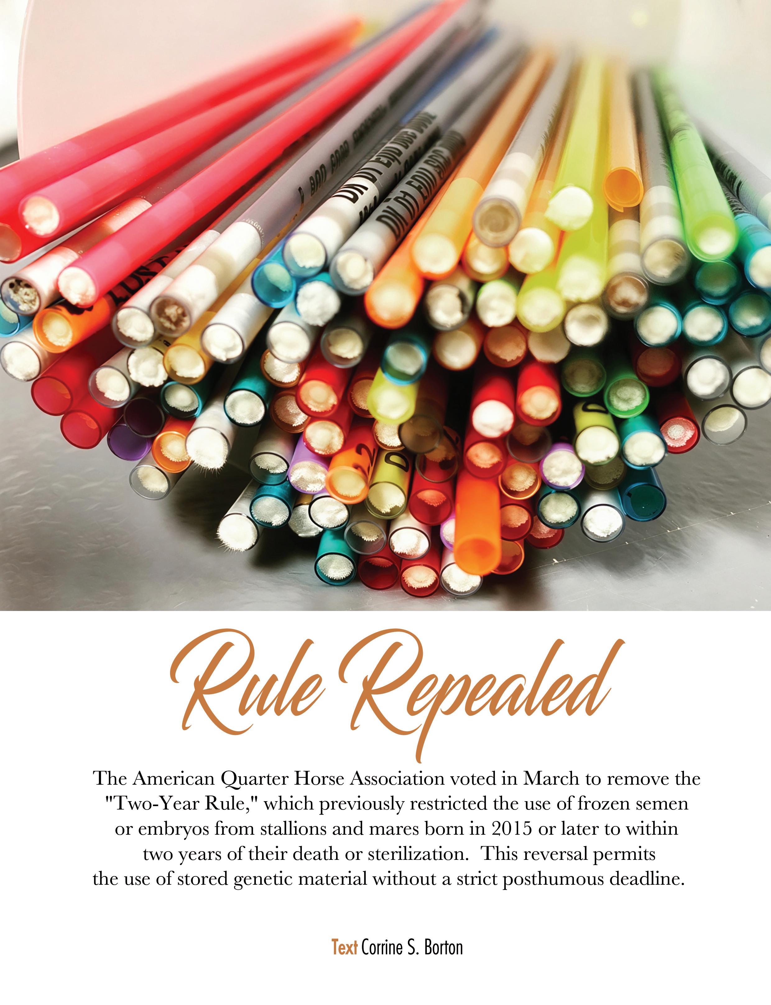 The rule applied to stallions and mares foaled in 2015 or later and governed the use of frozen genetics after a horse’s death or sterilization.