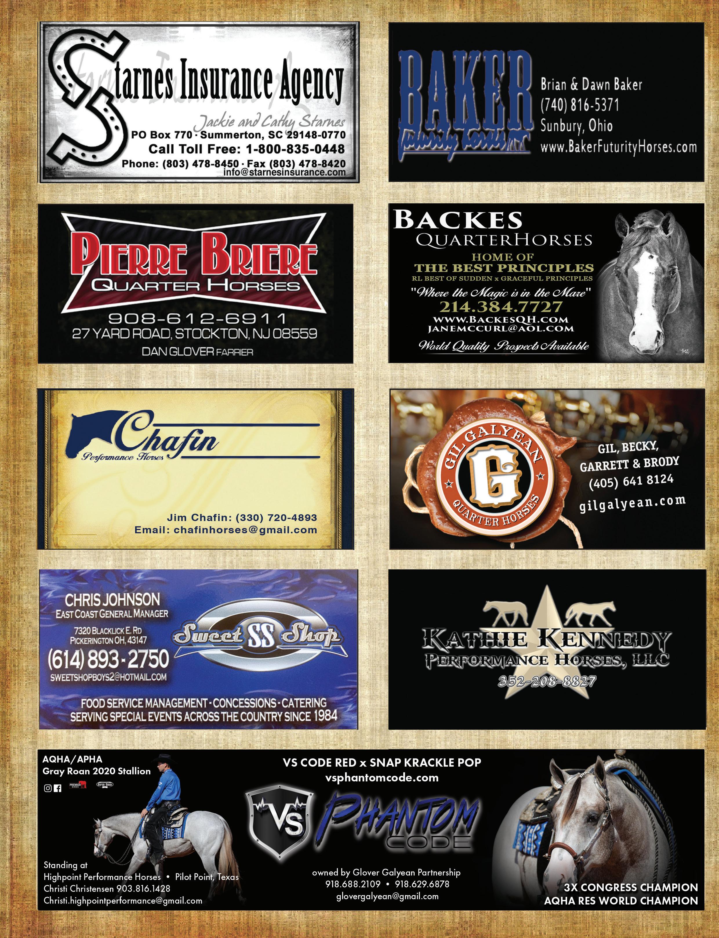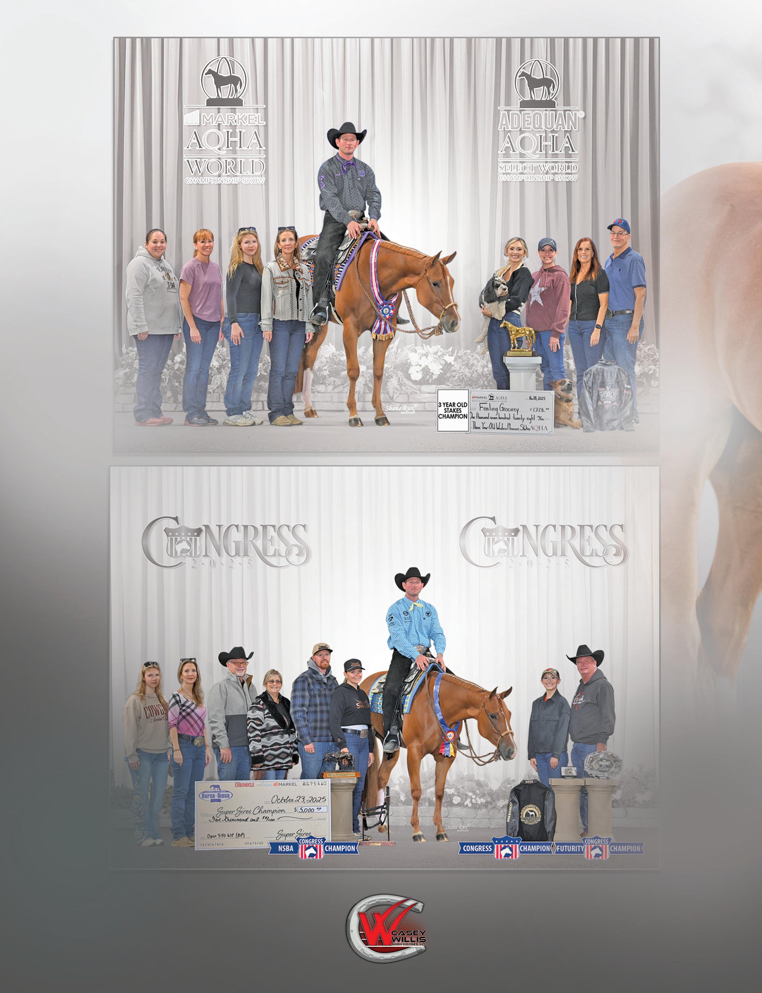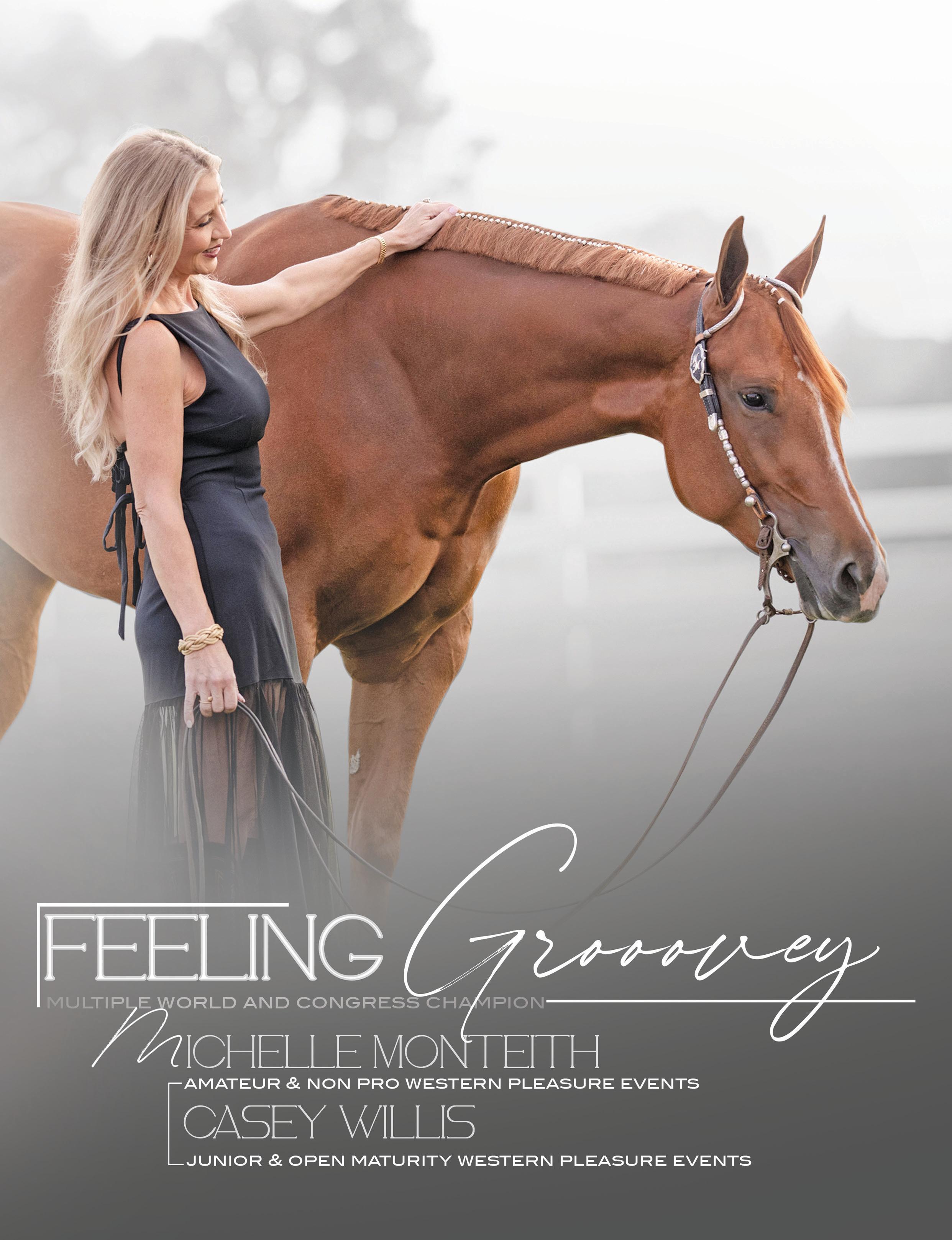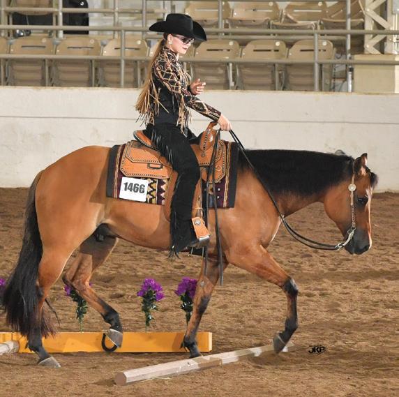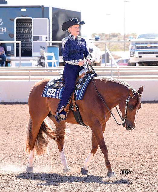 Lisa Wilkes’ all-around partner, Up N The Ante, is pictured on the opposite page (top). Originally intended to be a Western Pleasure prospect Jose showed his talent landed in other areas, such as Hunter Under Saddle, Horsemanship and Equitation. Together, Wilkes and Jose developed into formidable all-around contenders, showing and winning at high level shows like the Quarter Horse Congress (second and third rows, left) and the AQHA World Show (second and third rows, right). Made Like No Other (pictured on this page) is transitioning into Wilkes’ newest Western Pleasure partner. After winning the Congress and the AQHA World Show with Kenny Lakins, Lisa has now started showing the sorrel stallion in Amateur Select Western Pleasure and Non-Pro Western Pleasure Maturity classes.