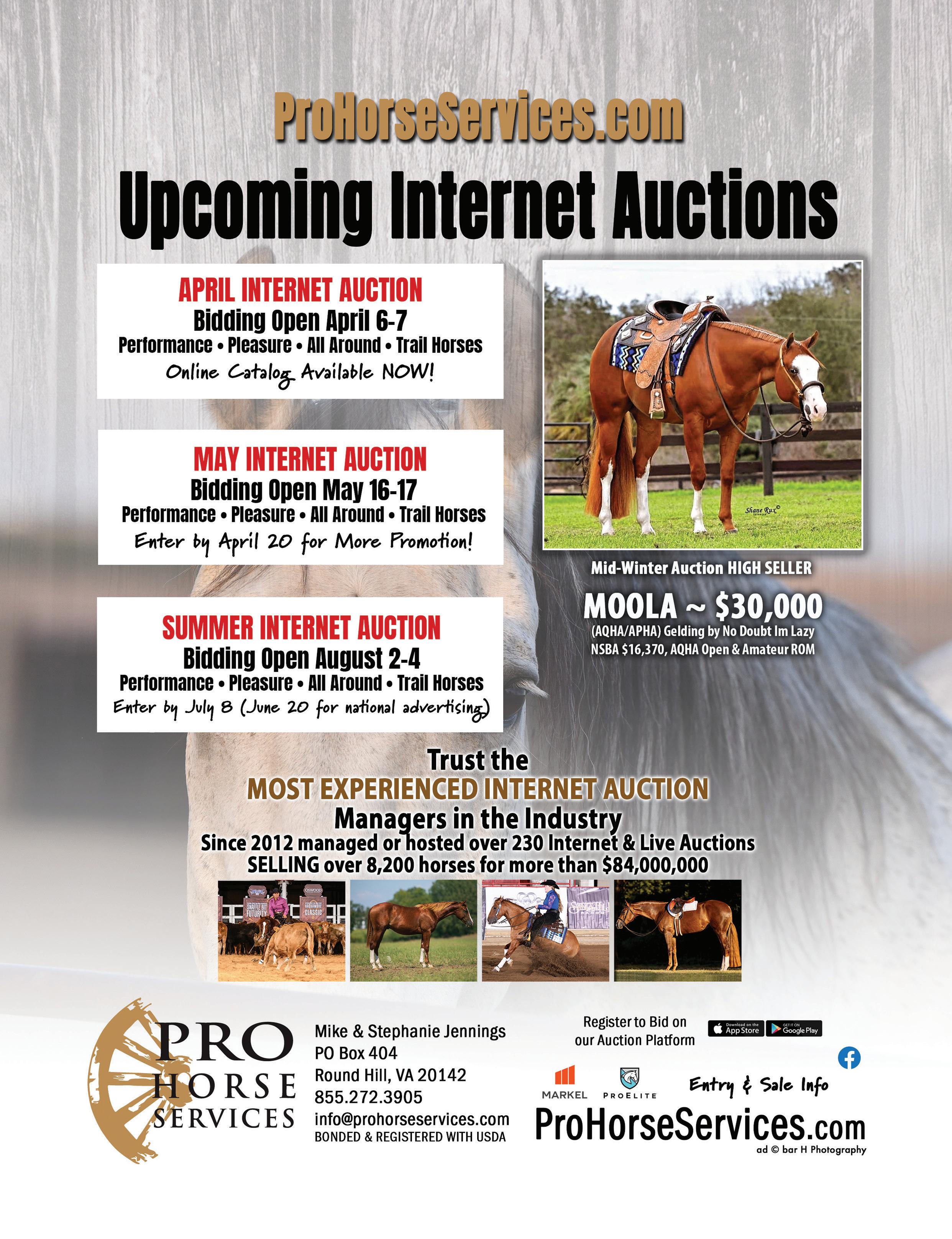 International Ranch Horse Association All-Breed World Championships (Sponsored by IRHA):Open Ranch Riding: $1,000 added; Open Ranch Rail: $1,000 added; Open Ranch Trail: $1,000 added; Non-Pro Ranch Riding: $1,000 added; Non-Pro Ranch Rail: $1,000 added; Non-Pro Ranch Trail: $1,000 added; Youth Ranch Riding: $1,000 added; Youth Ranch Rail: $1,000 added; Youth Ranch Trail: $1,000 added For details visit www.apha.com.
