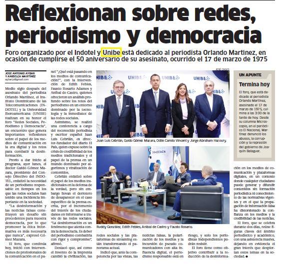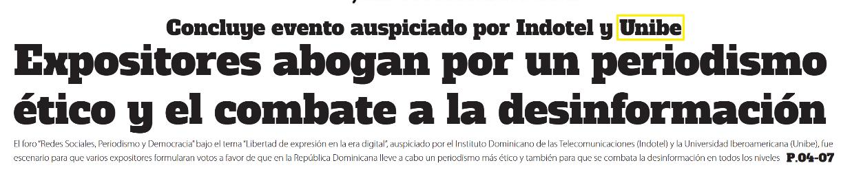 • https://elperiodico.com.do/2025/03/17/indotel-y-unibe-reunen-a-comunidad-periodistica-y-academica-en-foro-redessociales-periodismo-y-democracia/