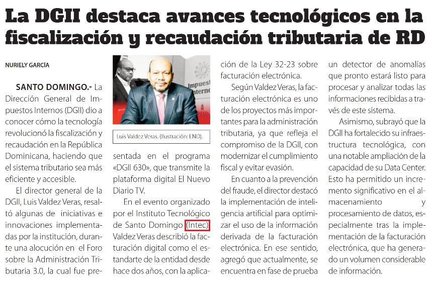 • https://elnuevodiario.com.do/la-dgii-destaca-avances-tecnologicos-en-la-fiscalizacion-y-recaudacion-tributaria-del-pais/