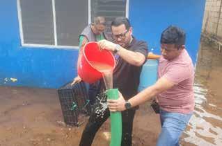 El SESESP habilitó una brigada de 32 personas de limpieza y ocho en atención a las viviendas afectadas por el agua, contando con tres motobombas hidráulicas y mangueras de 20 y 30 metros que succionaban el líquido y este era vertido a una zona donde no afectara a otra vivienda.