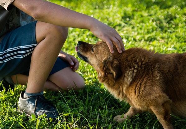 (1) die Hand geben/schütteln: Bild Handschlag; ein Bussi auf die Wange geben: Bild Mutter mit Kleinkind; jemanden umarmen: Bild zwei Frauen in Umarmung; eine Blume geben: Bild Mann mit roter Blume; streicheln: Bild Hund; lächeln: Bild lächelnde Frau;