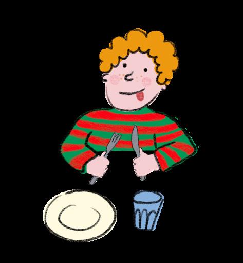 Einkaufen und Essen Tischlein, deck dich! Löffel, Gläser, Obst und Teller