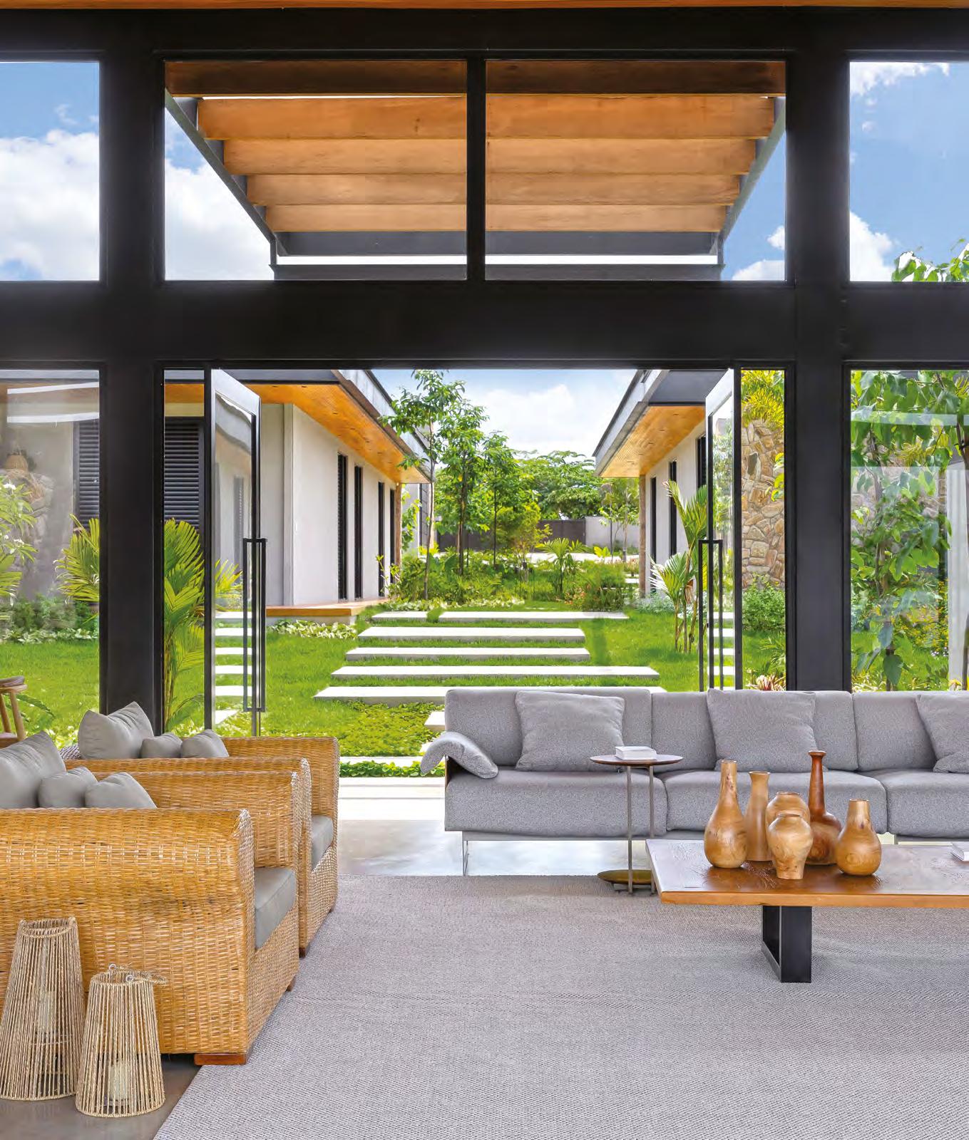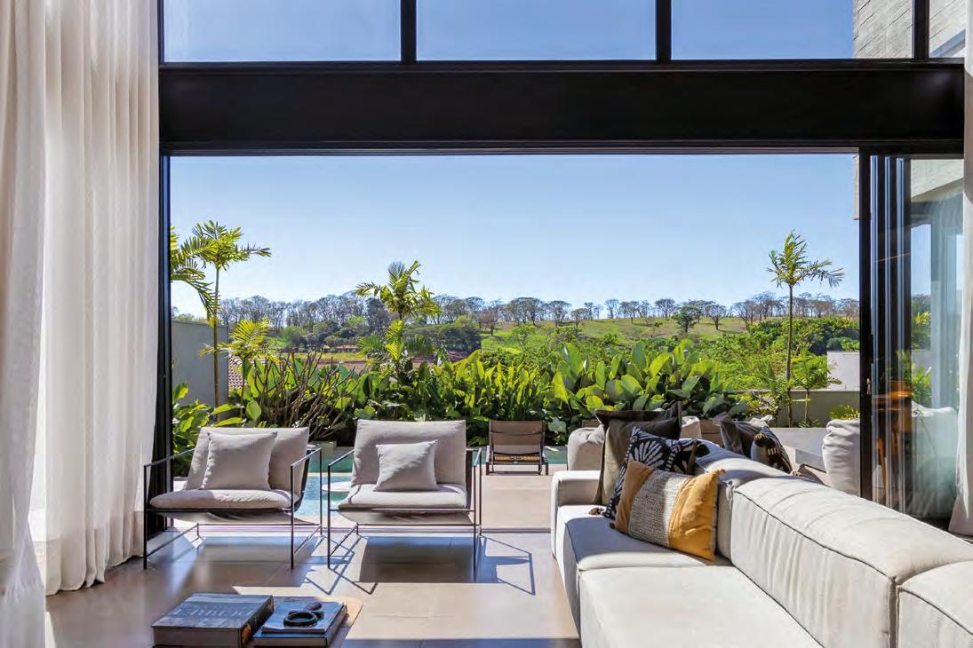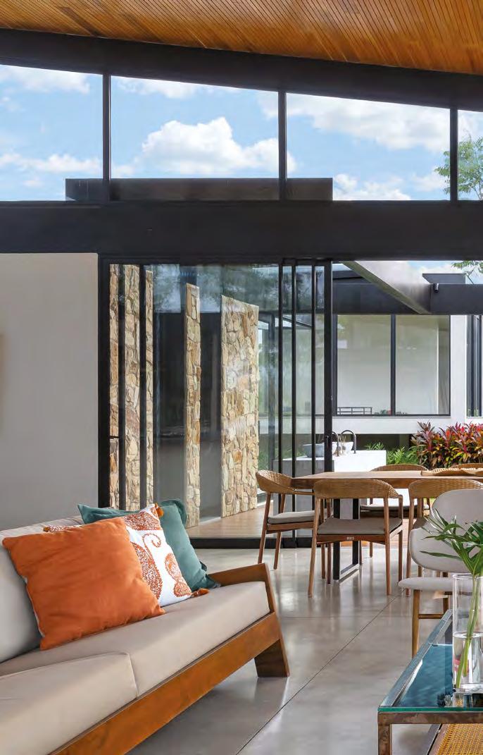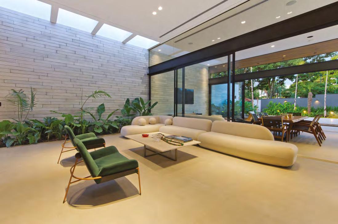 BRUNO ORTEGA O verde da natureza se sobressai na área externa e invade os ambientes internos a partir de generosas esquadrias que conectam os espaços
