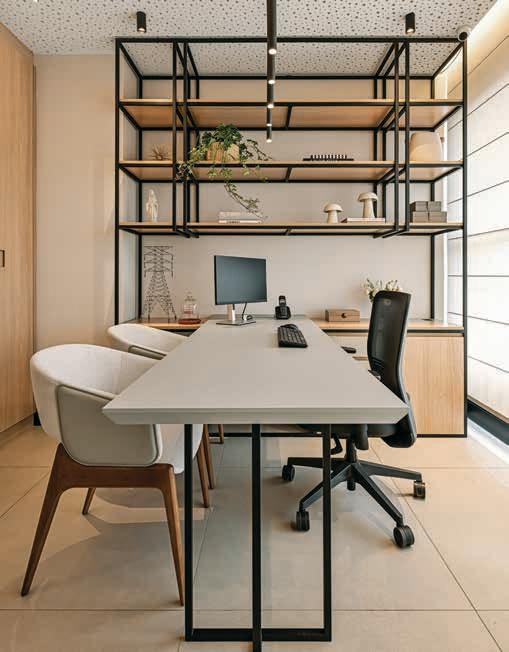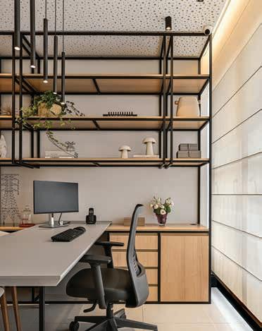 “Desenvolvemos este projeto para um escritório voltado à importação e exportação de frutas. A proposta teve início com a unificação de quatro salas comerciais e a completa readequação da infraestrutura interna. Apostamos em uma paleta de cores que remetesse às frutas tropicais, trazendo identidade e vivacidade aos ambientes. O resultado exibe espaços voltados ao bem-estar, com uma circulação eficiente, abundância de luz, ventilação natural e excelente qualidade acústica.” Carolina Magno