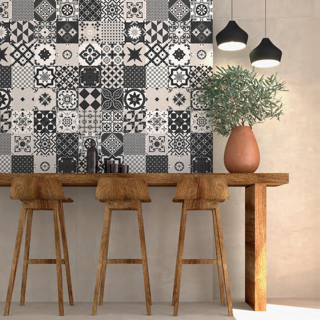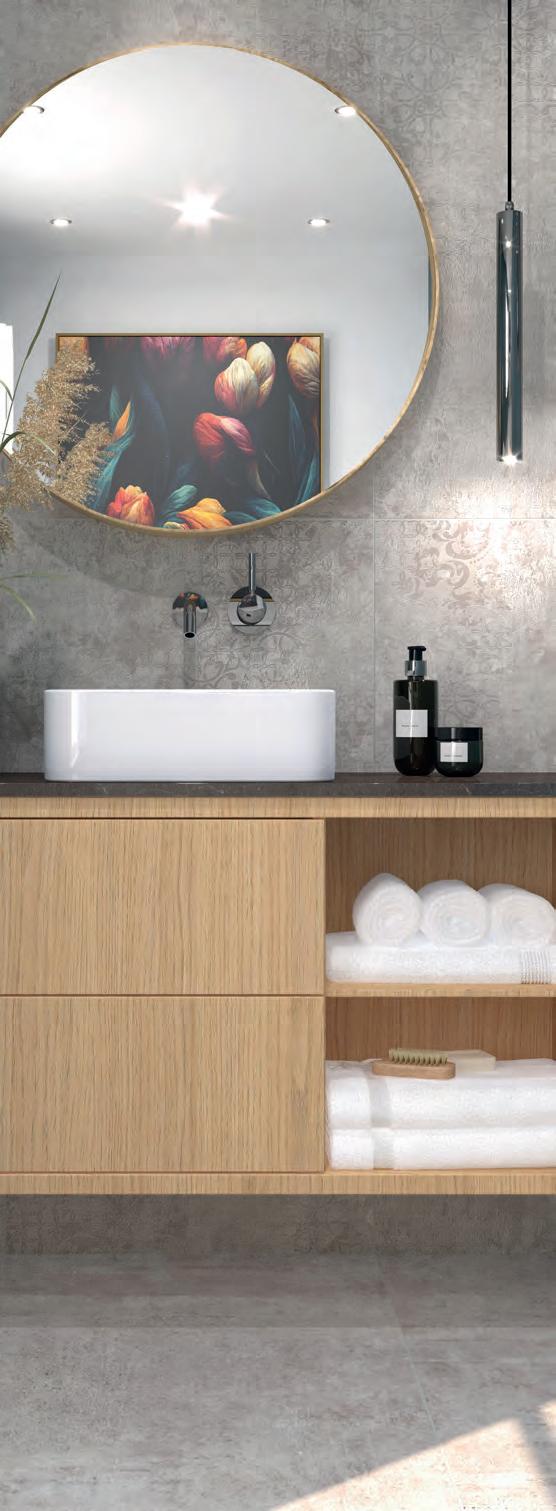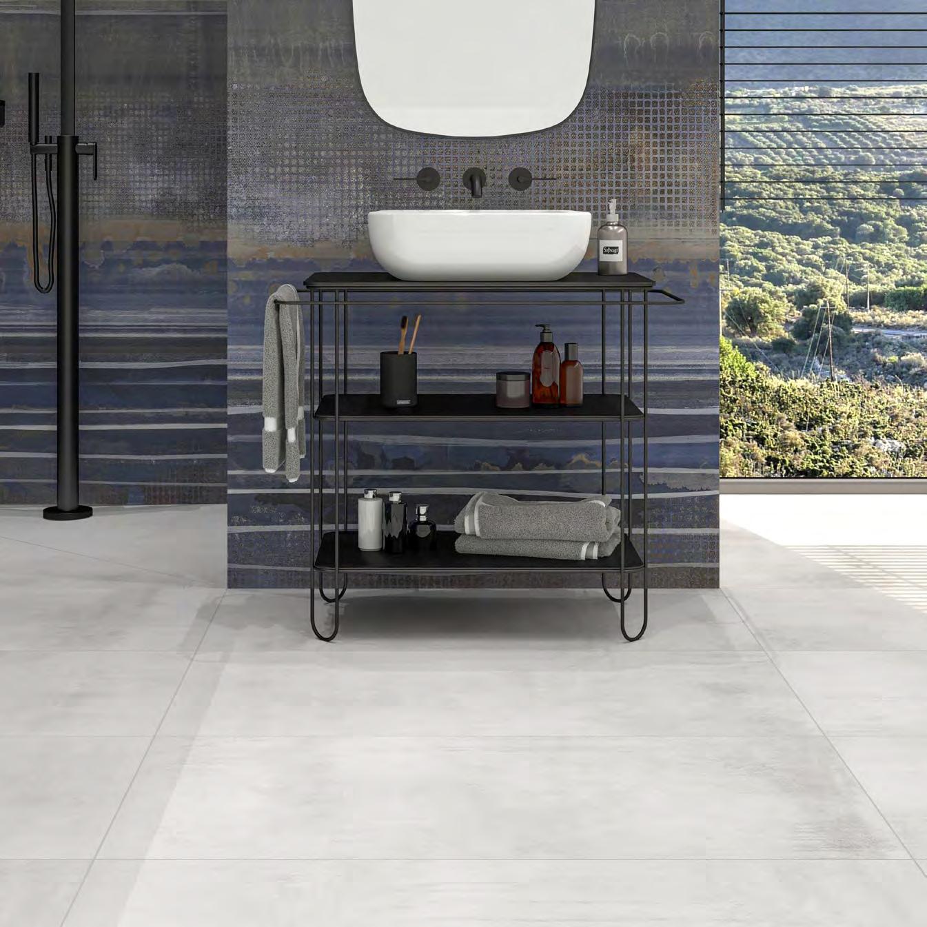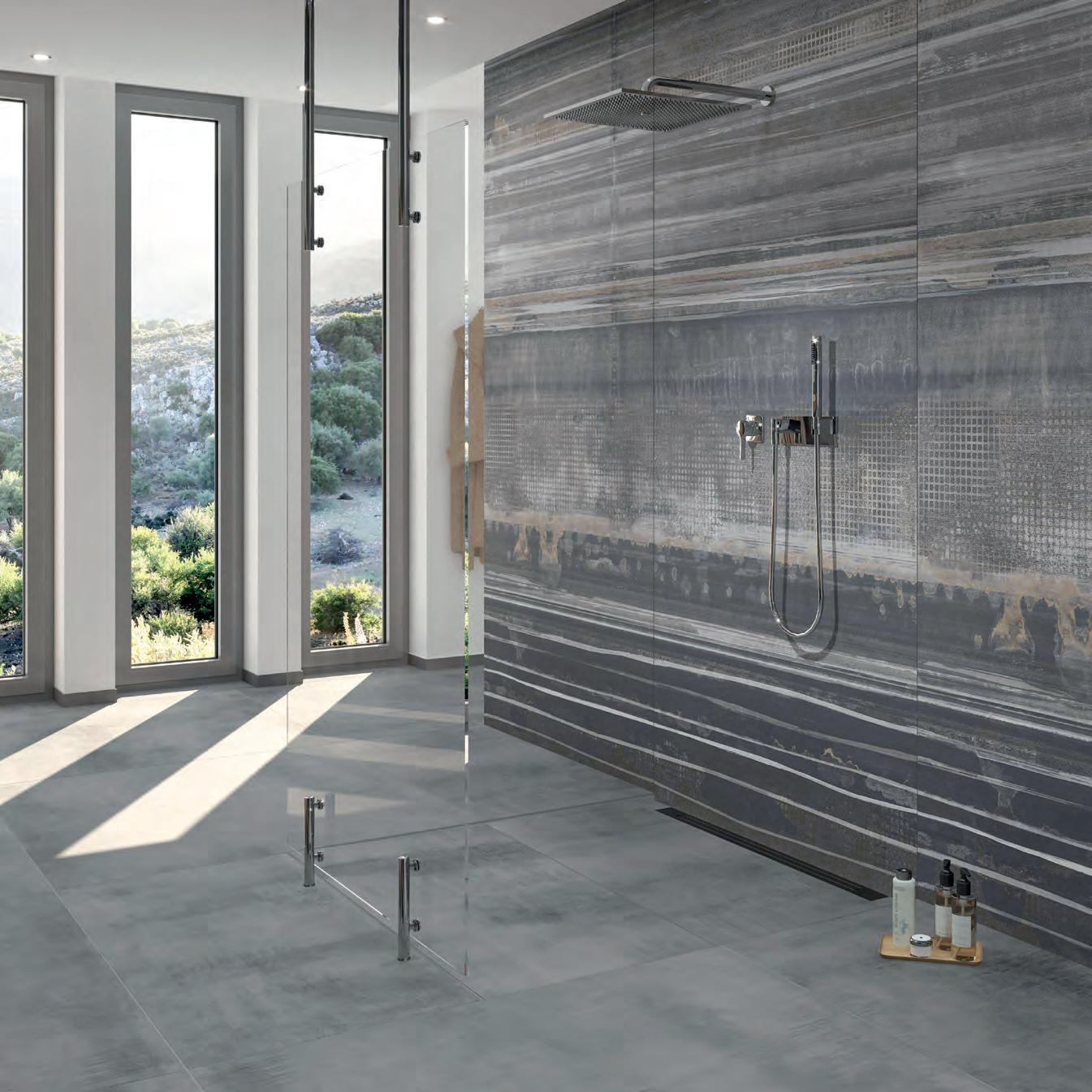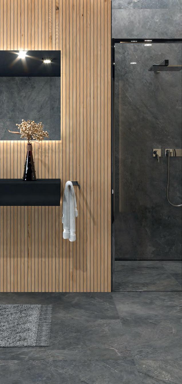 Ein abgestimmtes Zubehörprogramm ergänzt die Kollektion: Dekore schaffen luxuriöse Blickfänge und setzen besonders im Format 260 × 120 cm expressive Statements. SteinzeugMosaikmatten vereinen zeitloses Design und funktionale Sicherheit, die sowohl ästhetische als auch praktische Ansprüche erfüllt. Sockelleisten schaffen nahtlose Bodenanschlüsse.